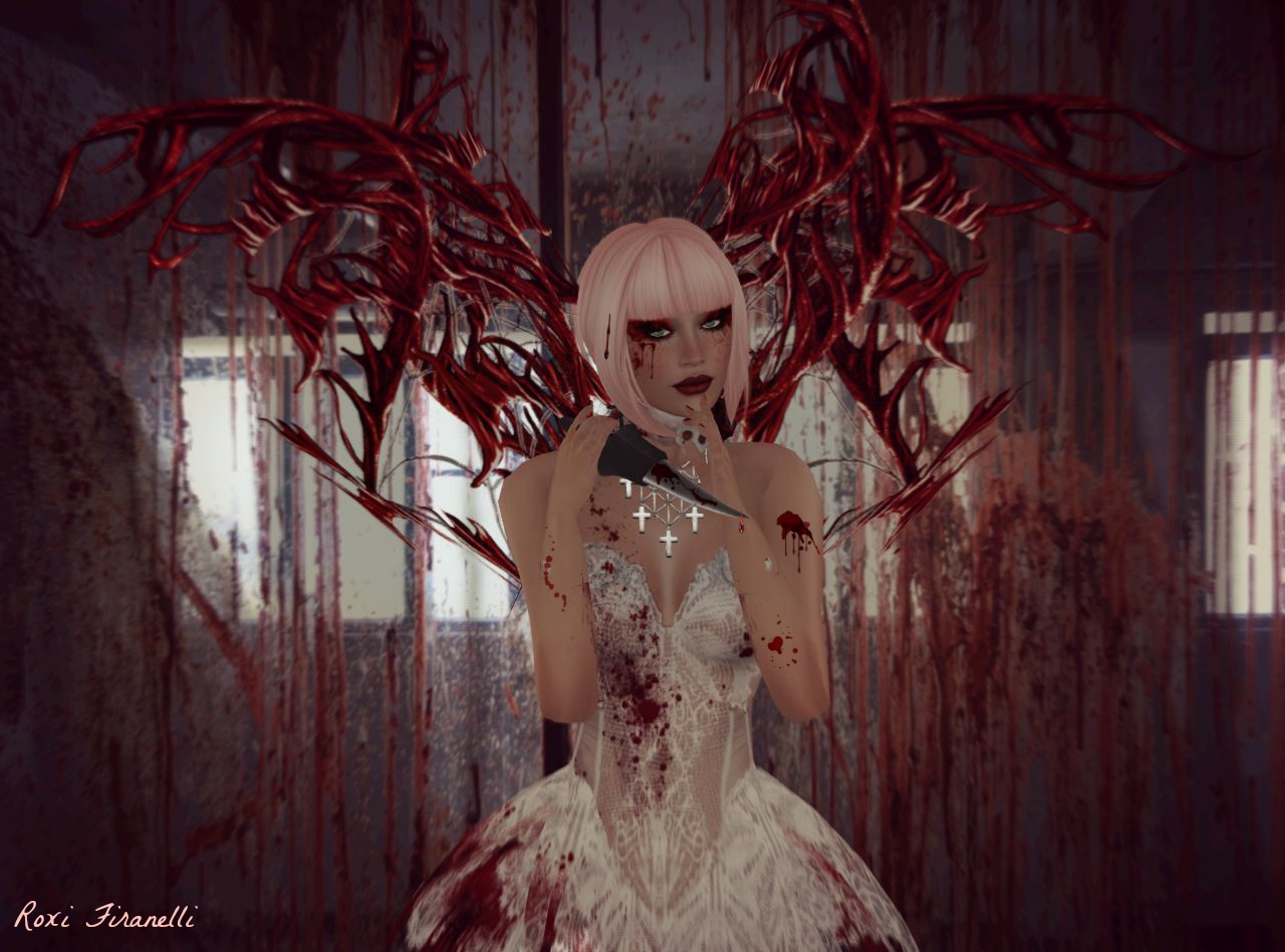 This is my bloody serial killer angel look….like Dexter on bad crack.