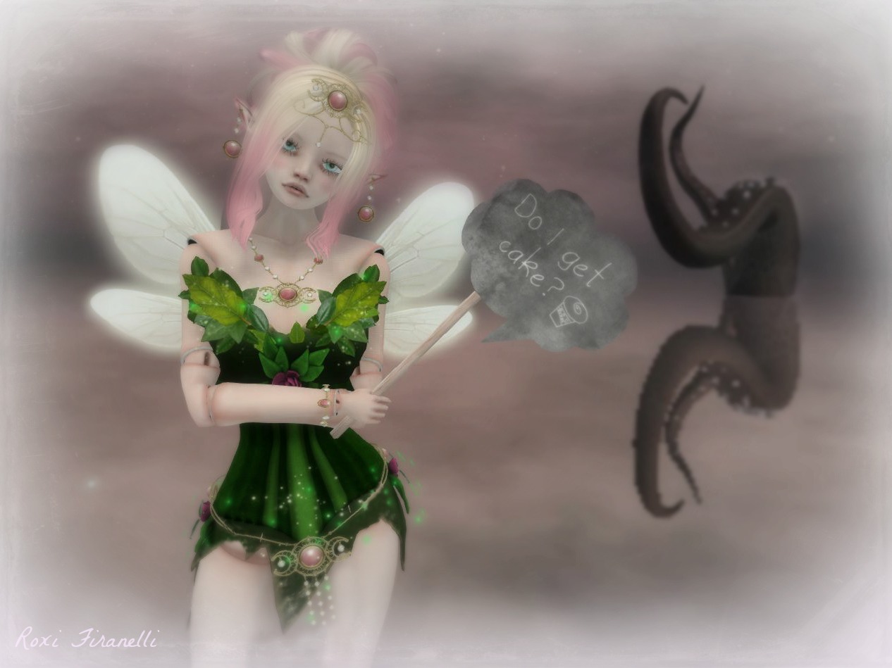 And since I was showing off stuff for the Fantasy Gacha, I needed to be all fantasy like…duh. I’m am a recent convert to the COCO Doll avie…I heart her desperately! She’s perfect for interesting pictures and makes a fabulous Tinker Bell (whoot Boudoir!)! I did this picture right after I went to the Pose Fair (where I may have dropped spectacular amounts of money) and all 4 things went together so well!