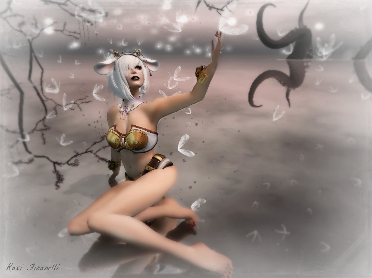 So I’m wandering around the Fantasy Faire before it closed and I come upon {anc}, one of my favorite stores . They always have cool stuff at events, in fact {anc} had the gorgeous umbrellas and thistle chairs at the last round of the Arcade that I used endlessly….and still have out on the patio by the beach…that pink thistle chair just makes me so happy 🙂 Anyway, I go into the store and all over the place are these freaking awesome floaty thingies (lemme know if I lose anybody in technical talk) called ephemera…..had to have them….may just put them all over the land cause they just look cool….like a whirligig with dragon fly wings. I was already planning on taking a picture with my Wish Master stuff from Atomic that I got at the FGC, so win win. I had actually won (yet paid for…odd) the rare plushie from Atomic and tried for the rare headpiece a couple of times (hence the bottles all over the beach), then…yayyyy…someone posted in the groupie group that they had the headpiece and wanted the plushie……score! A deal was made and I was the proud owner of this splendid headpiece :).