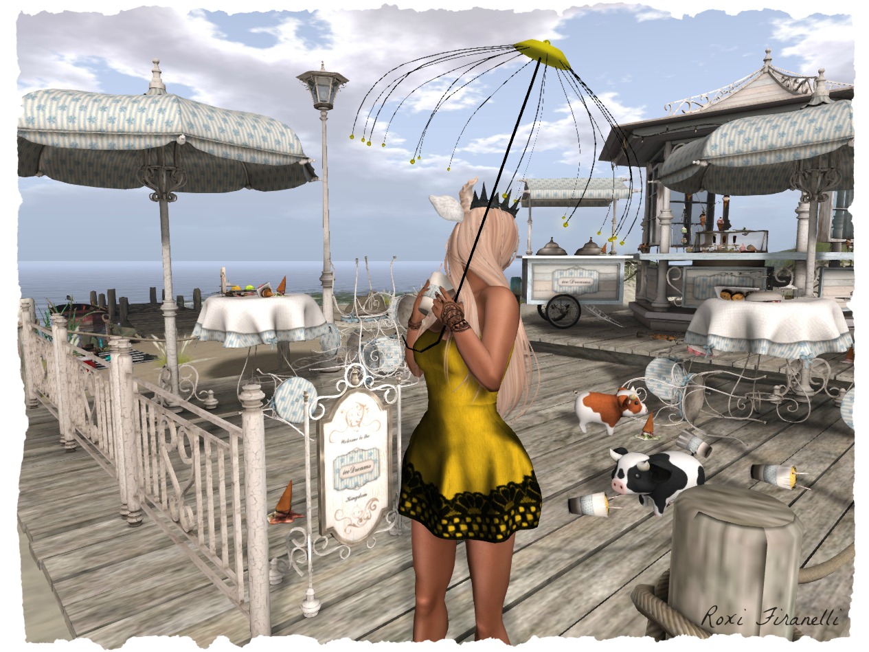 My awesome dress is from HeLa and comes with the color coordinated umbrella! The cool crown is from HeLa too, I popped over to her mainstore this morning to see what was new and well….a girl can’t have too many crowns. She has a snake crown coming out soon and I want it muchly!