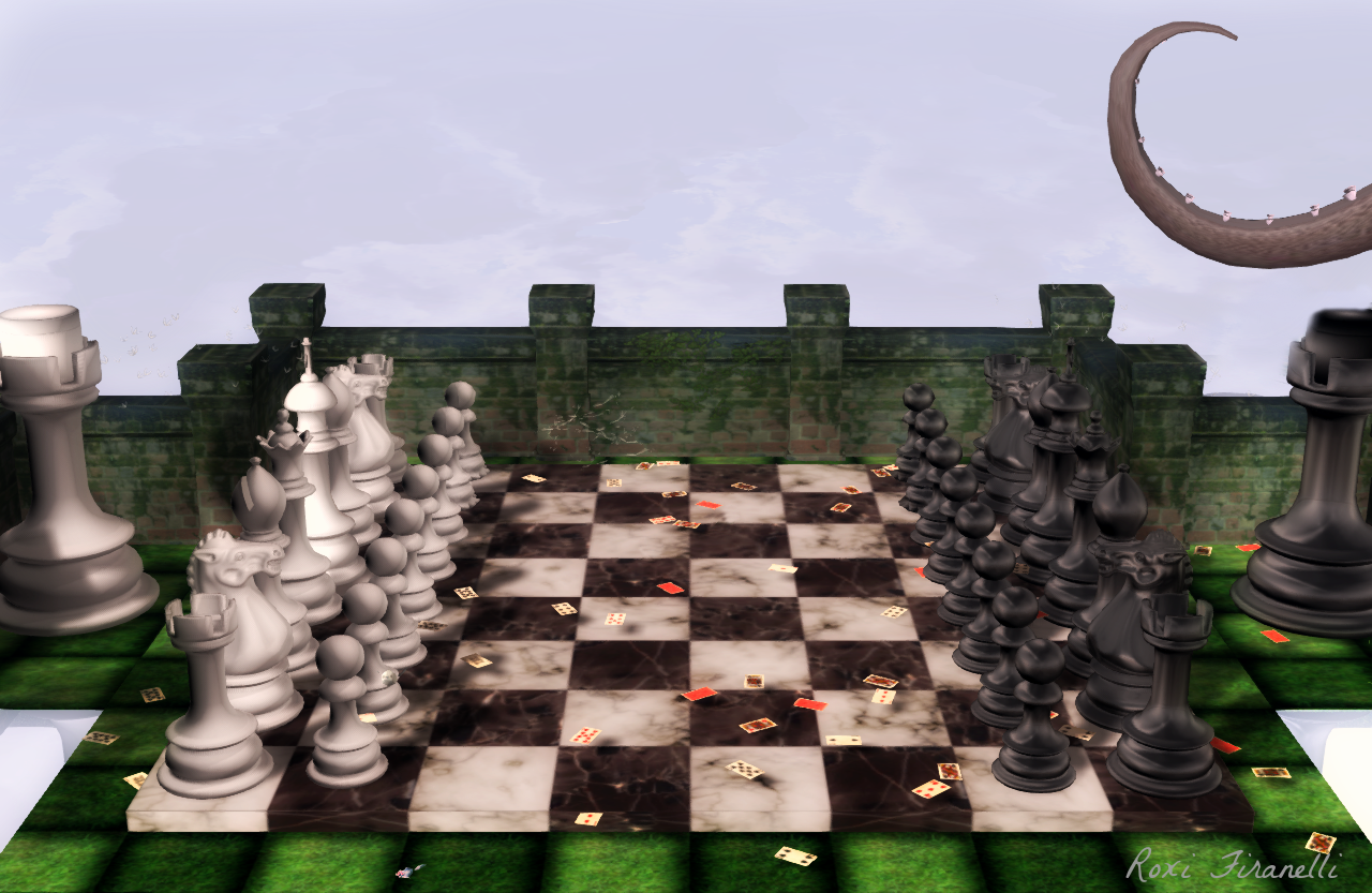 Boudoir happened to have this new Wonderland Giant chessboard…AND the Chess Queen Battle table from The Month of Games. Both play chess when you click on them! It’s kinda freaky really…I spent at least 10 minutes on the giant chessboard just running around trying to dodge the chess pieces as they moved across the board. I sooo easily amuse myself 🙂