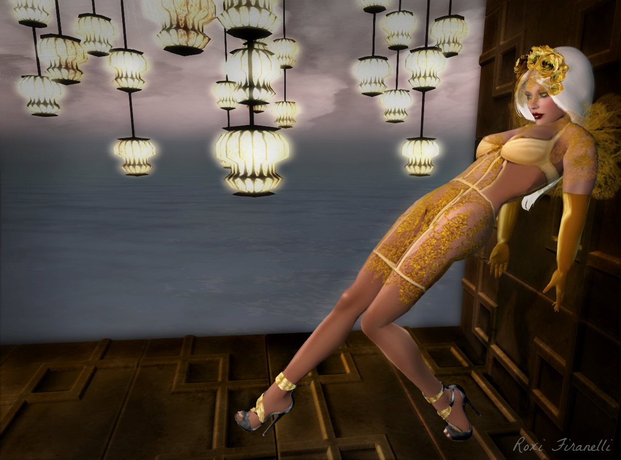 Boudoir is at it again….creating interesting outfits you’ll never see anywhere else.  New in store is Gold Rush…a lacey confection of gold that just screams hot.  Not in the least bit innocent, Gold Rush is not for the modest….pieces and parts are artfully on display and you can’t help but get noticed.  I wore it over to Collabor88 yesterday….that’s right…I finally got in…I had so many cross hairs on me I couldn’t see my own face 🙂