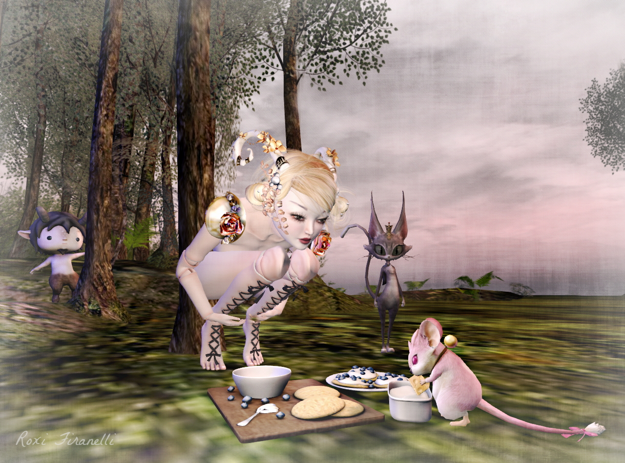 Excellent finds from around the grid…..the best reason to go shopping this weekend!  Collabor88 is still every man (or avie) for himself …. just keep trying…you’ll get in.  My latest jaunt there netted me these fabulous horns from Half Deer…..I’ve been a major Half Deer fan from the beginning….and the popular new hair from D!va…..also a major fan as evidenced by the scores of D!va hairs in my inventory.  The little guy peeking around the tree?  *MishMish*’s contribution to Collabor88…cutest little Pan ever….and he comes with a flute and plays music!!