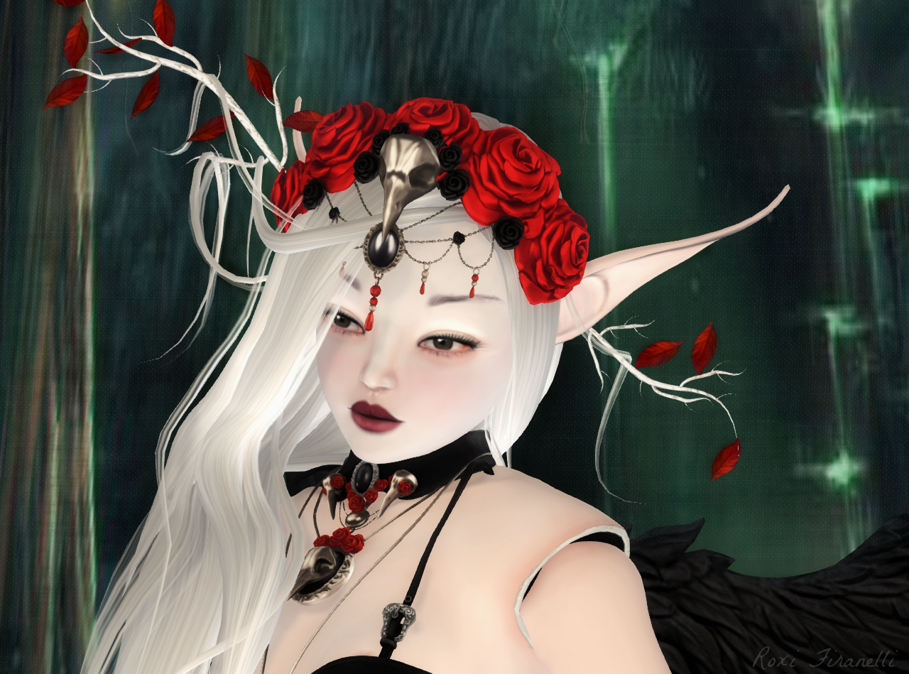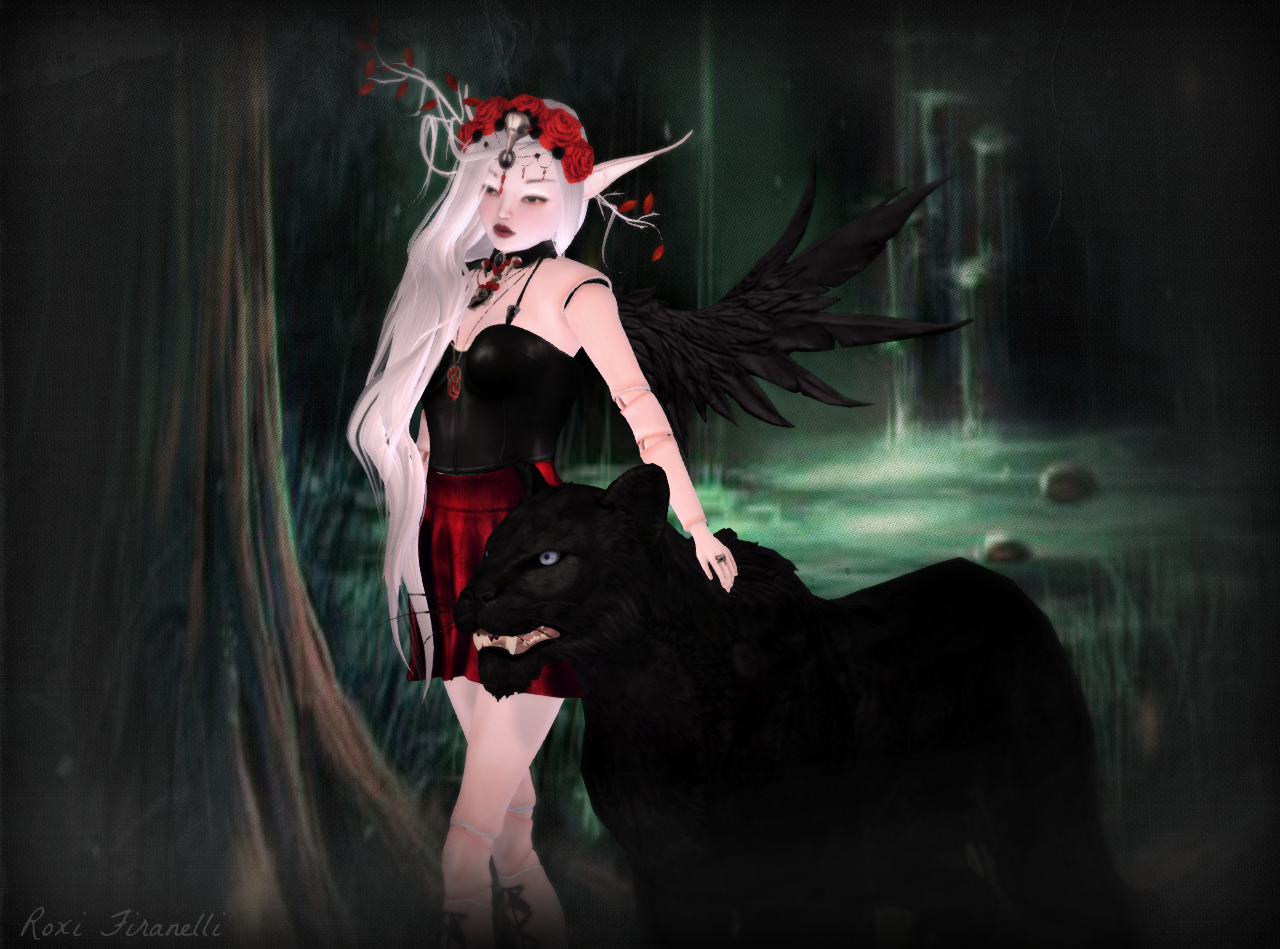 My entire set that I’m wearing is from the Affair (except the ears and wings….and panther…that would just be weird) and is the perfect example of the level of fabulousness that came to this round. The outfit and accessories are from Birdy, so expect no less than exceptional. Each piece comes with a color hud so your options go on and on. The rose headpiece goes perfectly with the little bones Willow Tree hair…and the leaves and branches have a color hud too! So 2 days people….2 days….get your melancholy on before its over!