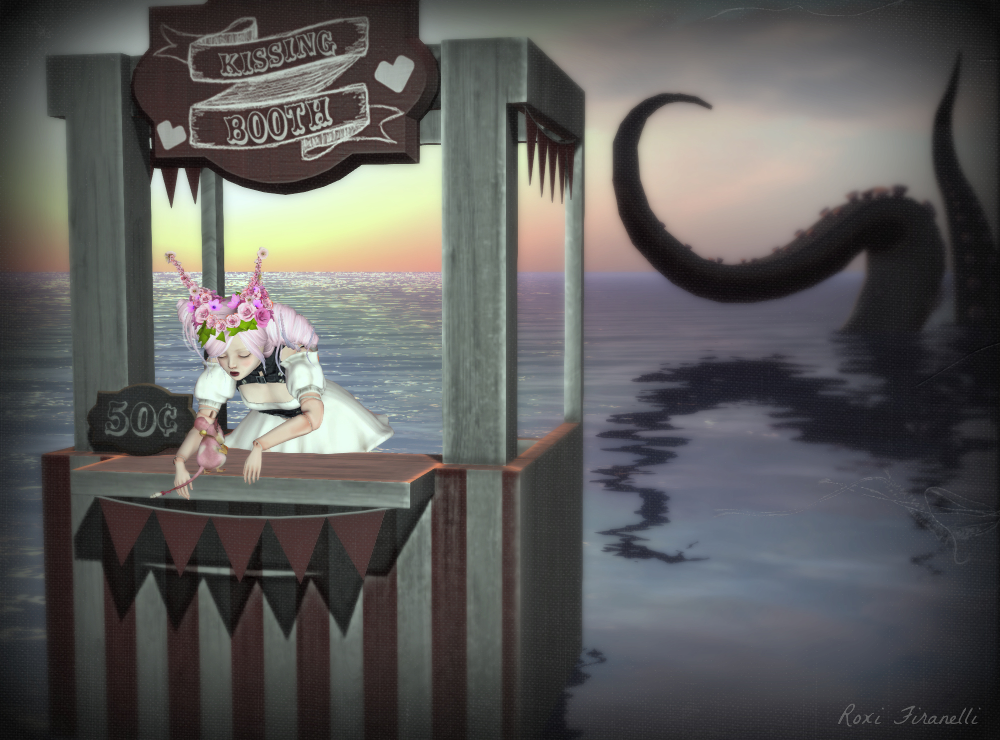 I feel like I could just call it a day at this…but no…there are things that need to be said. Frogstar couldn’t have picked a better time to make a kissing booth…really. Here in the U.S. as Ebola panic spreads to amazing proportions (seriously…drunk driving kills thousands more…what if we thought of THAT as a killer disease…oh wait…) it is not uncommon to hear people discuss whether they will be travelling (and I don’t mean out of the country either) and taking a risk of catching it from some careless infected person. I’ve heard people say they won’t be going to buffets anymore…those sneeze guards are a nursery for viruses after all and people pick out the cherry tomatoes with their bare hands. We need to dial it back a bit and think through this clearly. Not panic. Not spread stupid zombie rumors. This youtube video may help. Go make spaghetti after you watch it 🙂 Bless you Ravenna for making the kissing booth (which can be found at Cirque du Seraphim) !