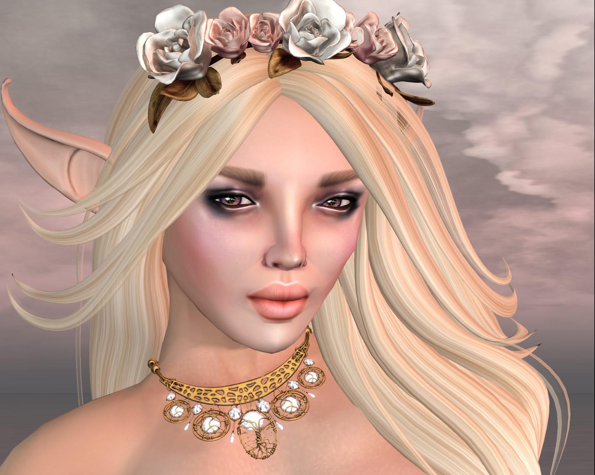 I figured since I had to wear a skin and hair anyway, I’d piggyback on the challenge and get a post in for the Secret Affair…pretty clever huh?! The skin from random.Matter is dewy fresh and pale enough to show off the gorgeous hair from Entwined. The necklace from the Forge fits in perfectly with the Harvest Moon theme, as does the flower crown…also from random.Matter.