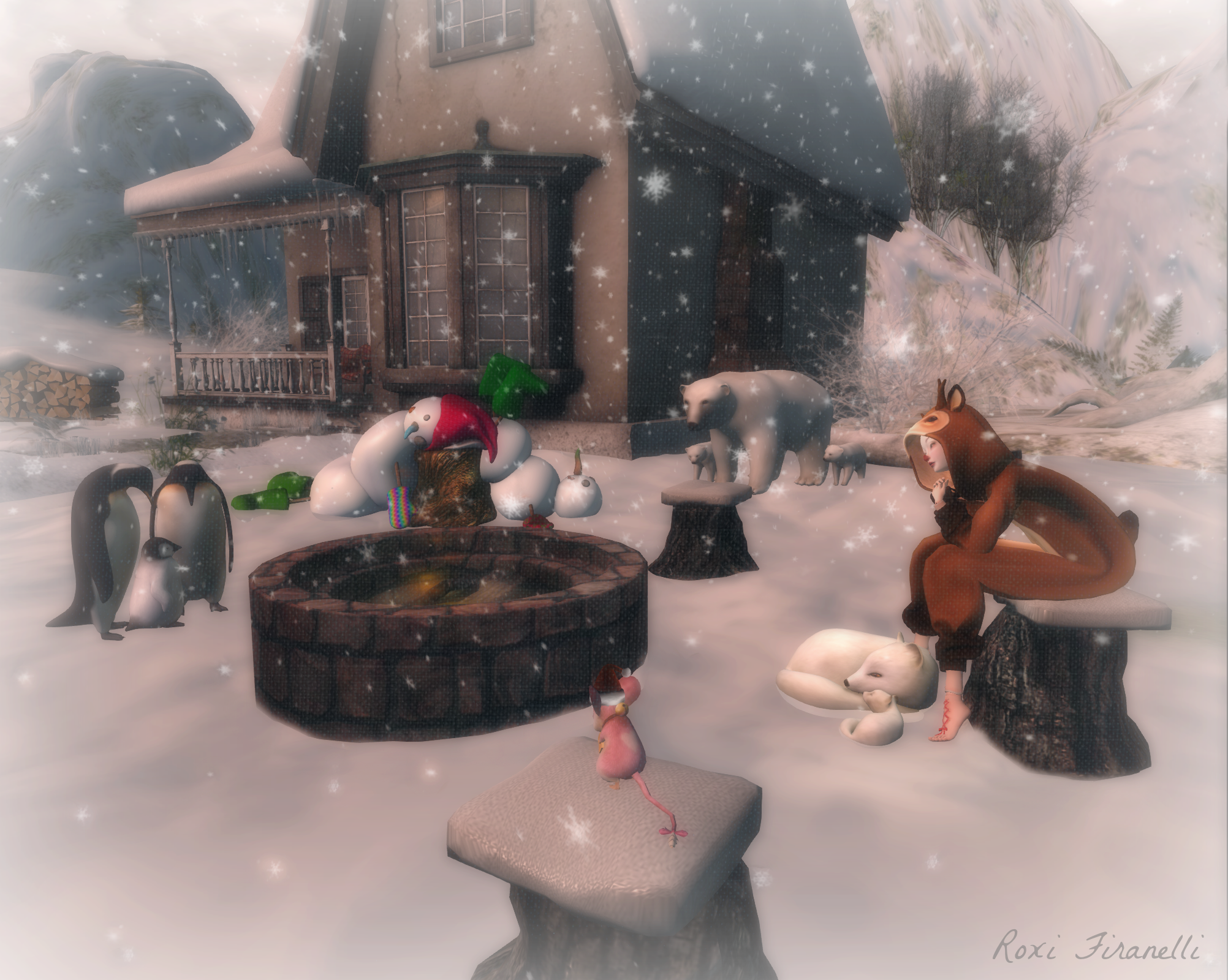 Some other goodies from the Arcade helped the picture along…couldn’t pass up the Ispachi Cherished Moments winter animals or the Miamai snowmen…I loooove snowmen. The onesie…ohhhh…the onesie from Pixicat….I just wanna roll around in it and cuddle myself ❤ The 8f8 Granny’s Cottage is still perfect…I could just sit here and stare at it…and I do! All from the Arcade folks…if you don’t wanna fight to get in, go to a yardsale…they’re booming with items right now ❤