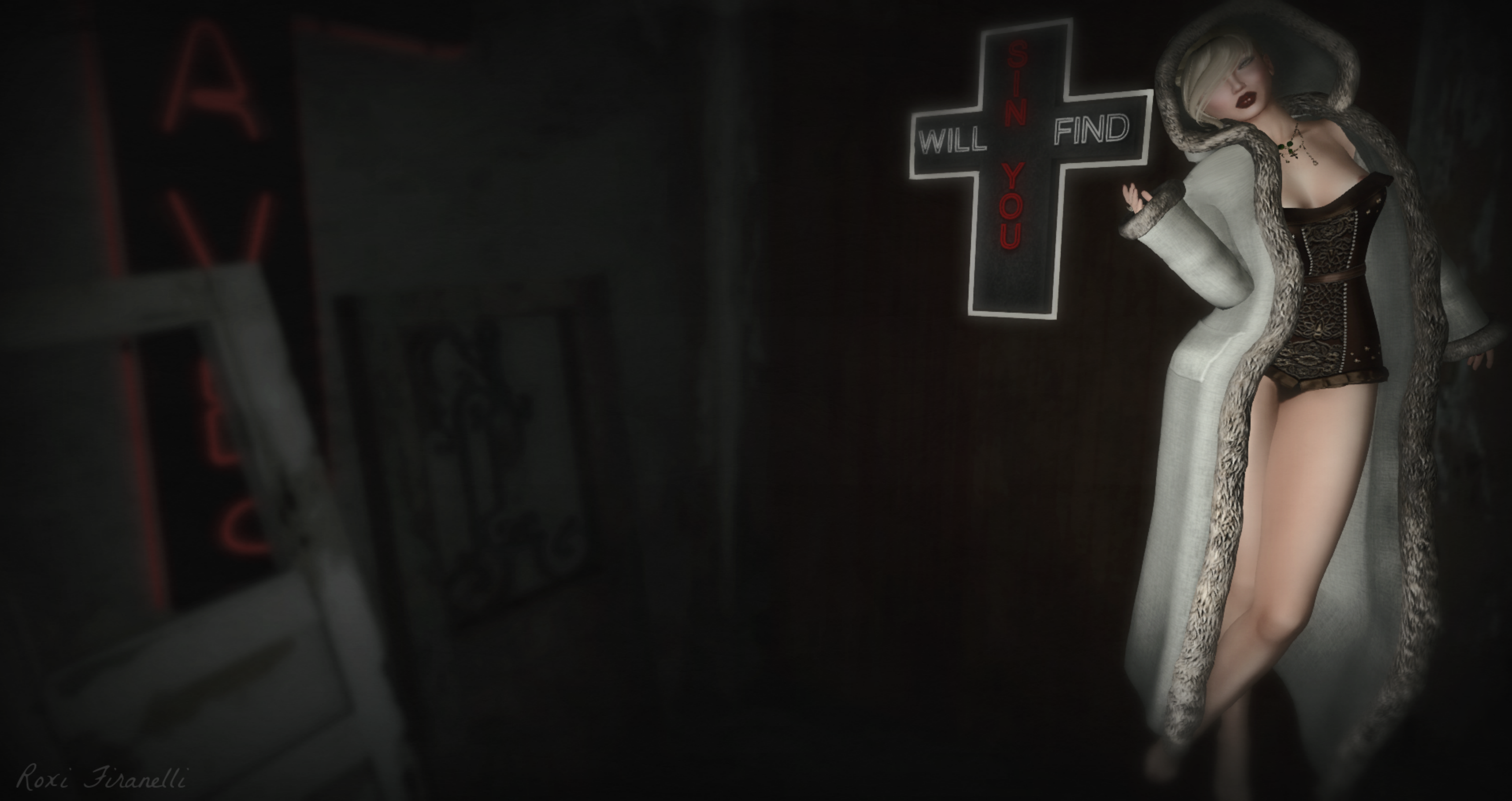 In news closer to home…the Season’s Story opens tomorrow…just another great event that is going to mark January as an epic shopping month. Rucy Byron of Aphorism will have his new Winter coat available there…it’s so fabulous I was walking around naked in it for a good while yesterday….and actually considered taking the picture that way. Darth said if Rucy wanted me to wear clothing under the coat…he would have sent clothing with it…it’s kind of hard to argue that train of thought. The coat is available in 3 patterns and 2 colors: Black, White, Aztec ‘Bird’, ‘Lizard’ and ‘Monkey’…all stunning. I couldn’t find a thing to wear underneath (insert massive eyeroll here) so I felt the need to pop over to We ❤ Role-Play and shop. I may have gotten a couple of glances walking around half naked…but ya know what…it is sooo much easier trying on demo’s without pesky clothing getting all tangled up! Way too many lindens later…I put on one of my purchases…this gorgeous corset by Enfant Terrible…I just feel delectable walking around in it ❤