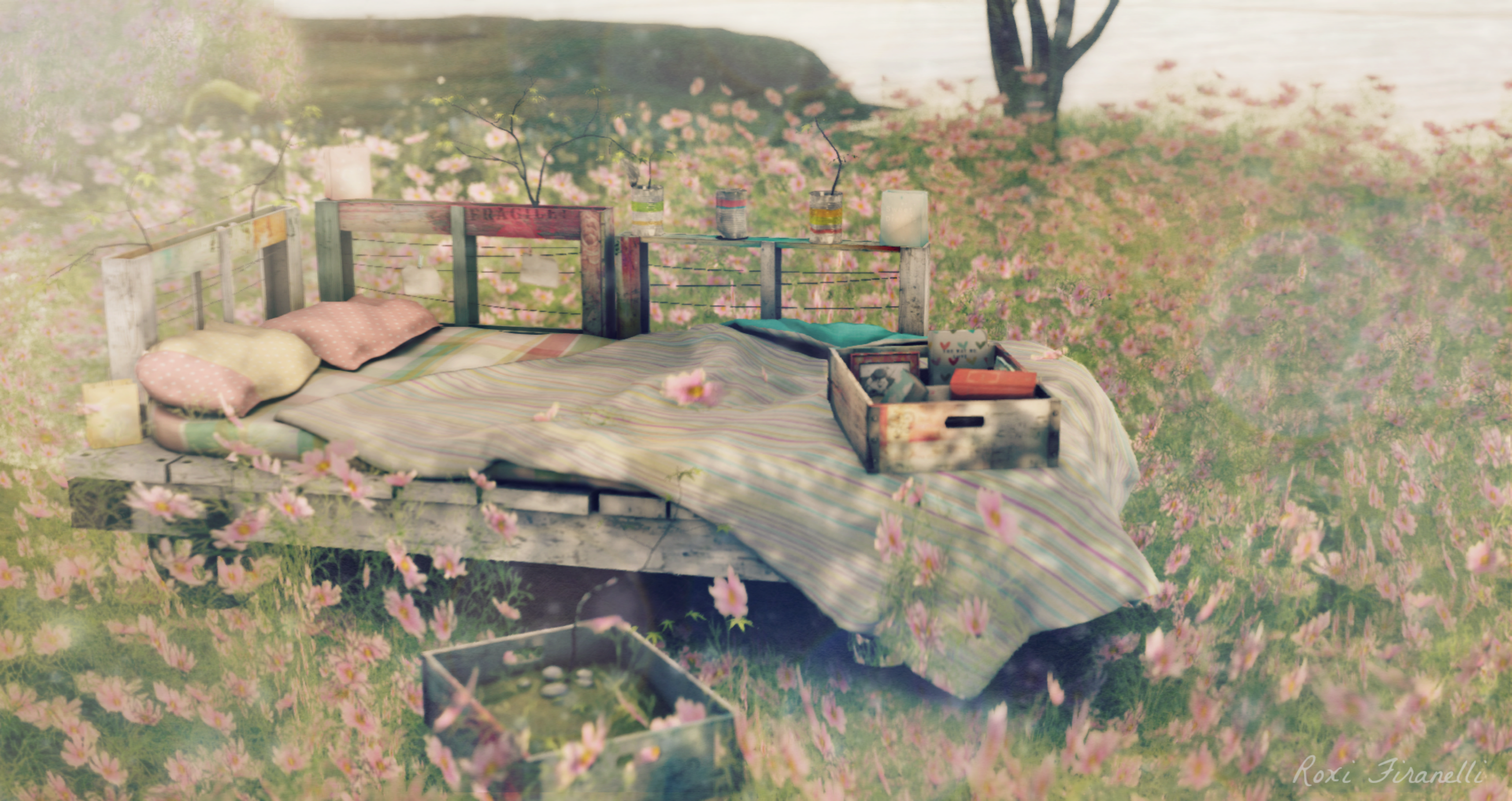 Not much makes me happier than seeing a new collection from 8f8….chocolate maybe….but it’s close. Ibi has created the fabulous Indoor DIY Spring collection for this month at faMESHed. You can choose between a set with natural earthtone colors or the more colorful pastels like I have…either way…win win. Darth did a post using the natural set…you can see it here. There are so many texture changes on the pillows, sheets and blankets that the math eluded me (darth says 289…I dunno) and there are 20 single and 10 couple animations….all from one of the most creative designers in SL today ❤