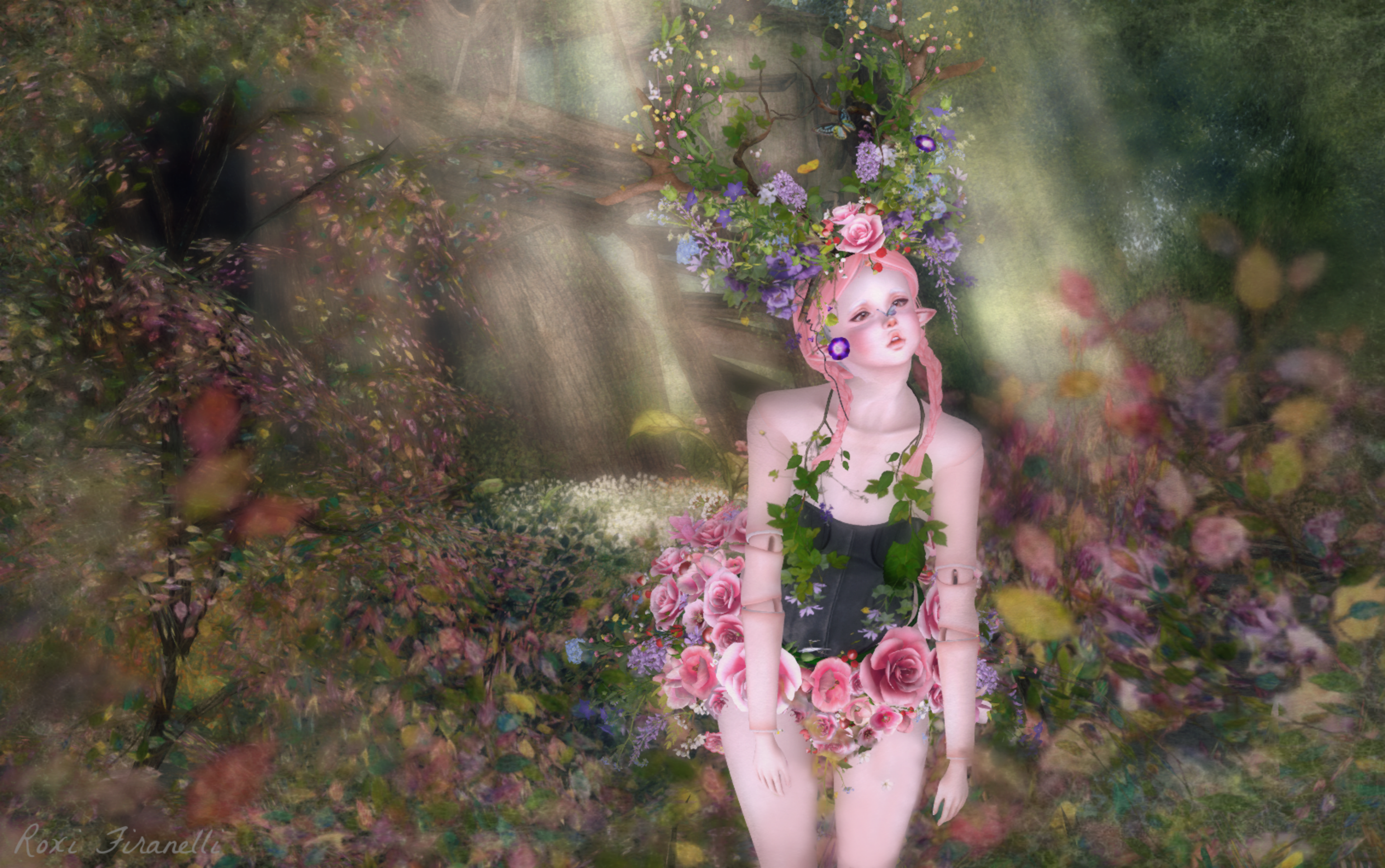 New from Boudoir….Spring Fever….a gorgeously floral fantasy to celebrate Spring. Complete with floral skirt, draped leafy top and a headpiece that sports butterflies flitting about….you can’t not love it ❤