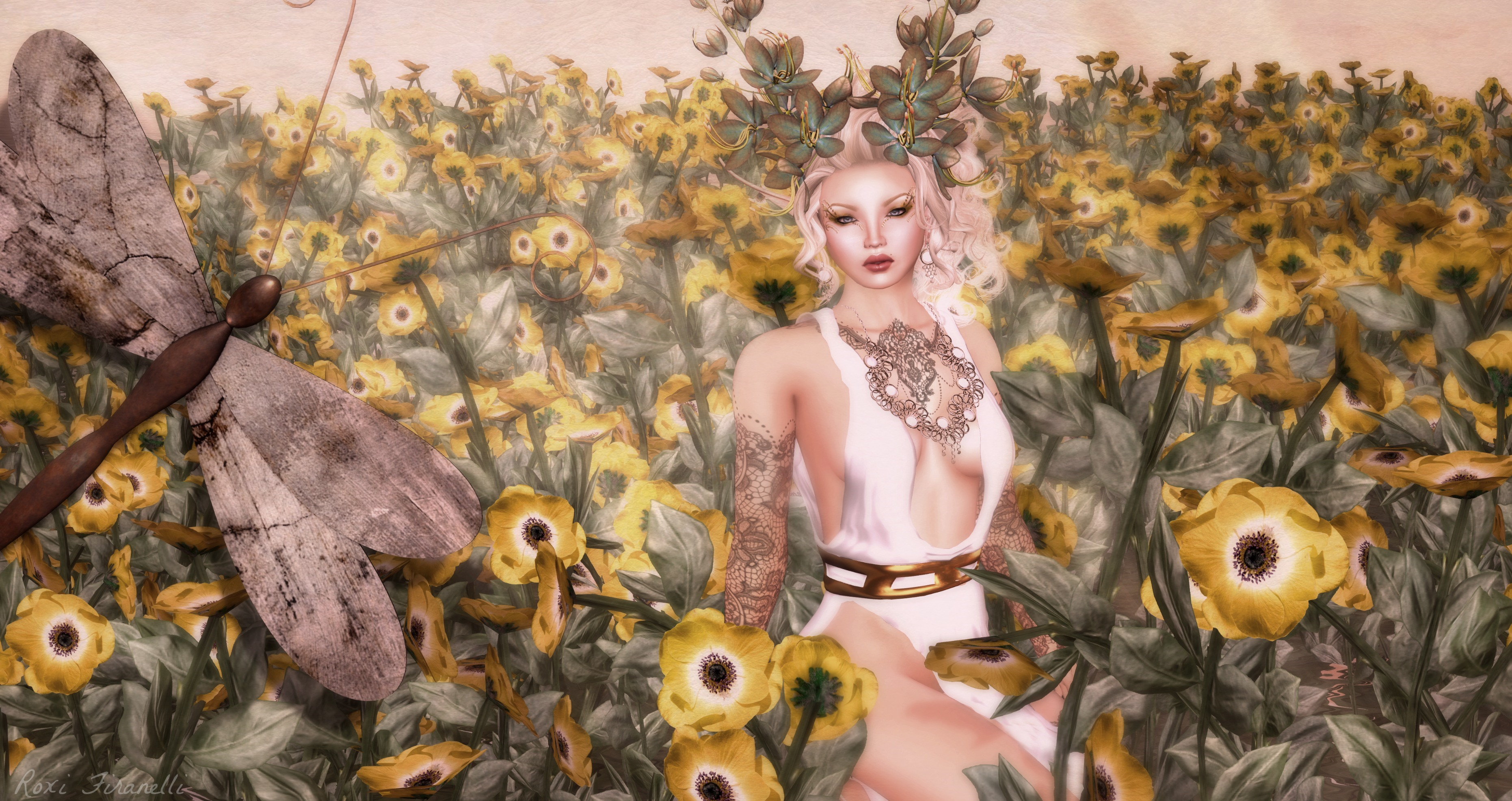 The new hairdo, Olivia, is from Analog Dog…a sexy, messy, curly updo that just works with everything, including the flowey, romantic dress from Alegria that can be picked up @ We Love Role-Play, along with the PXL skin and the kneeling pose from an lar ❤