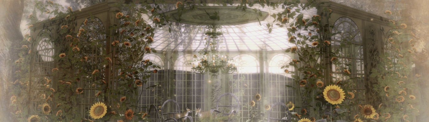 Beauty in nature….coming to you from Boudoir. This gorgeous, gossamer greenhouse comes with everything you see here….greenhouse, chandelier, sunflowers, dining table and chairs, whimsical woodland creatures….even the sunbeams. What more could you want while sipping tea with friends and faery folk alike?