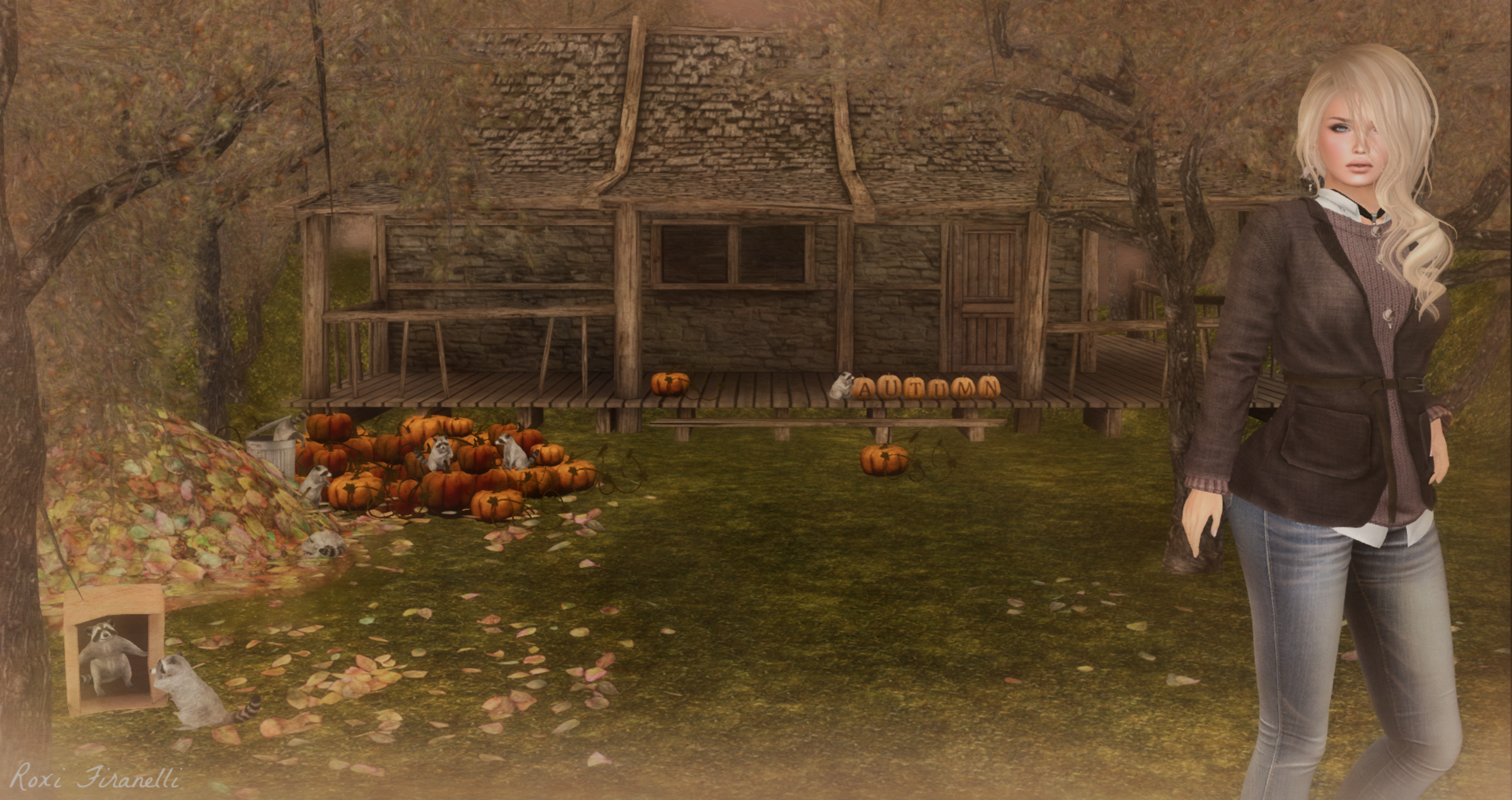 So my reason for being human today is Aphorism’s latest release for women, the Autumn Jacket Collection, which will be at the new round of Season’s Story. It’s available in 6 colors; black, charcoal, grey, light grey, blue and brown (the jacket comes with a texture change pad with 5 color options for the sweater underneath the jacket; blue, black, plum, mauve and grey). Of course, as we’ve all come to expect from Aphorism, the jacket has a Maitreya Autohide included….so no thinking going on. Paired with the ass-fabulous Mia jeans from Blueberry (I swear, I only have 3 brands of jeans in my inventory….Aphorism’s, Maitreya’s and Blueberry’s) one can’t help but be ready for crisp weather (coffee…I should have a cup of coffee in my hand…dammit!).