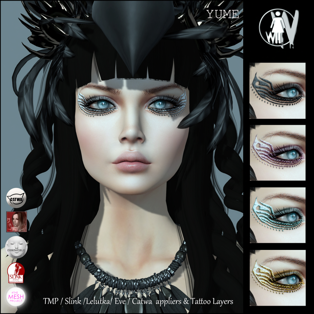 We Love Role-Play opened yesterday….quick….runnnn before it gets too crowded! Seriously…Remarkable Oblivion is there…look at these freaking wings! While you’re there, you can’t pass up the newest tats from White Widow; Caravage is delicate and bold at the same time and comes in white, henna and black. Yume is a beautiful face tattoo that comes in 4 colors, black, pink, silver and gold. So many goodies….don’t delay ❤