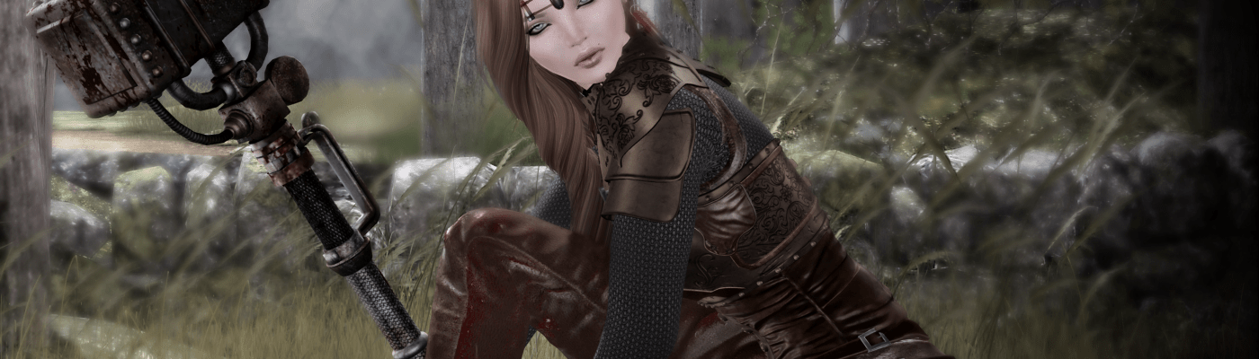 We Love Role-Play is still open for this round, so if you are in need of some kick ass attire…this is the place to go. Today’s “I have a big ass hammer and I know how to swing it” look is brought to you by Azuchi, maker of many extraordinary fantasy/kick ass gear. The hammer itself, named the “Steam Crusher”, is formidable as well as finely detailed and comes from those innovators of deadly weapons, Bamse. To contrast all that bad ass we have Entwined’s long soft hair, Isobel. I’ll tell you, I almost never do anything but blonde’s and pastels…but when I popped this hair on and saw this color…it was just too gorgeous not to keep. The textures from Entwined are just beautiful…too beautiful not to shake it up every now and again ❤