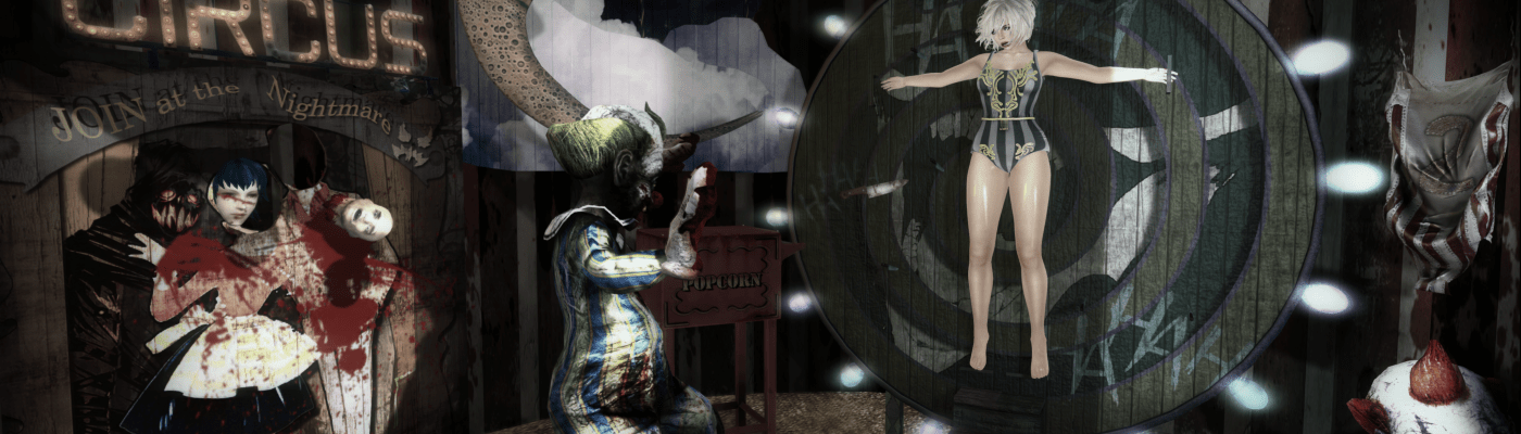 It’s Arcade time people! I was out of town for the opening..hanging with my favorite mouse in Florida…so I missed all of the hullabaloo. I’m totally okay with that though, cause I’m really more of a yardsale girl. I loooove going and just seeing what everyone has out…and I almost always get everything I want that way… and some things that I didn’t even know I wanted! I’ll pop in to the actual Arcade when the crowd dies down and play a couple machines just for the fun of it and see if I get a rare or two. Usually I like the commons more than the rares, cause I’m weird that way, but I’ll tell ya…I really, really love the rare trapeze artist costume from Reverie’s Carnivale Collection and couldn’t wait to put it on. Darth had the collection and was setting up for his shot and offered to let me take a shot also… yayyyy. I’m thinking all adorable and lighthearted fun at the circus…. Darth was thinking about how many people to kill and evil clowns….. guess who won? I can’t wait to see what his picture comes out looking like, I’ll put a link when he’s done! ❤