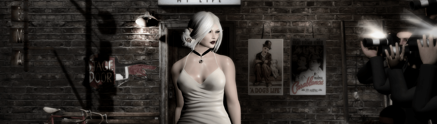 Special smooches to Darth for setting this entire scene up. I pulled out a few of the items last night, including the kunst lightbox, and he decided I needed a stage door sign….and a stage door…and a building…and, and, and. I came home from work today and he had all of this set up…he even made the stage door sign because he couldn’t find one. Hell, he went and played the Rowne gacha just to get the paparazzi! Absolutely priceless ❤