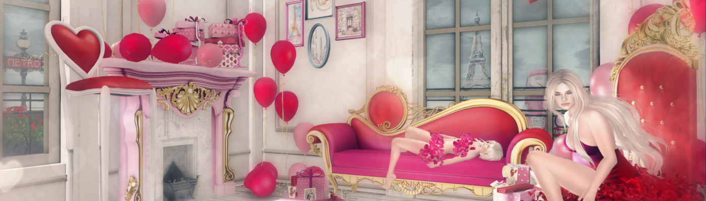 That being said, you still want to romance up your SL! Boudoir has 2 gacha collections out in the store for Valentines (both at 50L per play), as well as several rose-bedecked outfits. Actually, one of the outfits is actually a photo prop, but I’d bet there will be someone walking around using it as an outfit!