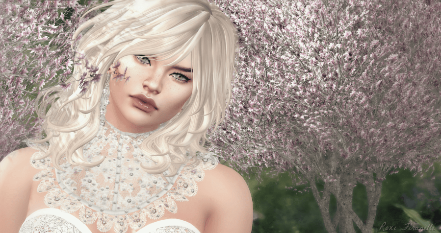 City of Angels is the theme of this month’s Swank event as well as the name of the set from Heartsdale Jewellery. The white lacy collar and drop pearl earrings are as romantic as they are delicate. They go perfectly with the lace version of the Ella bra and panties from Just Because (all of which I have been popping around in this morning and I dare someone to tell me something) ❤