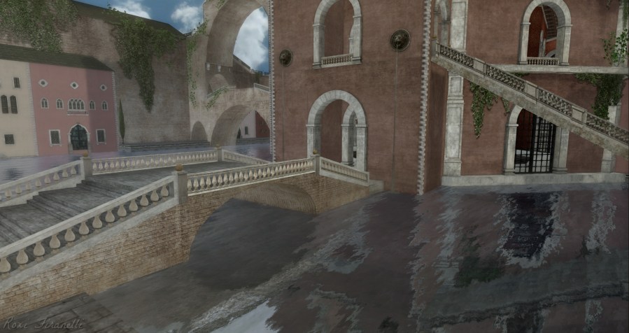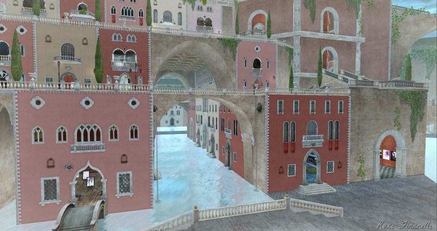 Thoughts of Venice infuse your senses when you enter The Rose, a beautiful, incredibly detailed wonder of a sim. Walkways and bridges abound to connect the buildings that are surrounded by water.