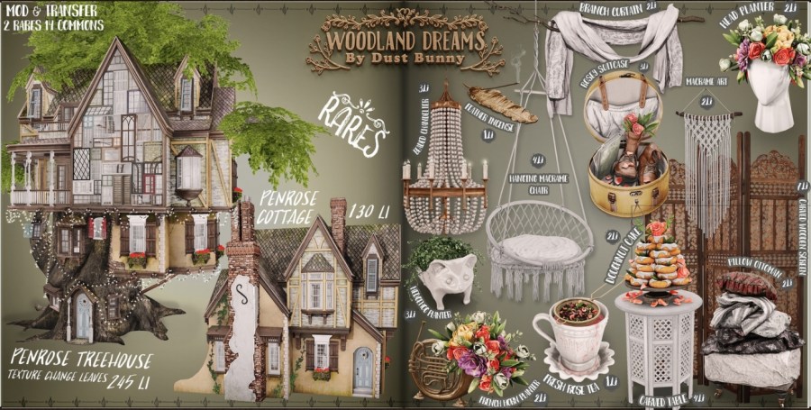 If you need to gacha before (or during, just somewhere else), O.M.E.N and dust bunny are having a gacha review of their own with a couple of fabulous collections. Both sets are 50l per play with absolute must haves. For me, the must have in the O.M.E.N set is the 20 pull reward…the naptime pup…when I saw the vendor ad I couldn’t get to the sim fast enough and start pulling. My goal for the dust bunny set was the rare treehouse and this hanging macrame chair…got both…plus everything else. Scroll down for keys to both amazing sets ❤