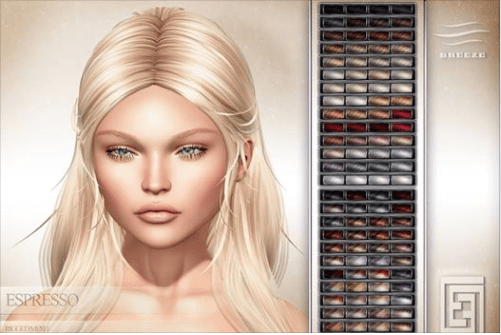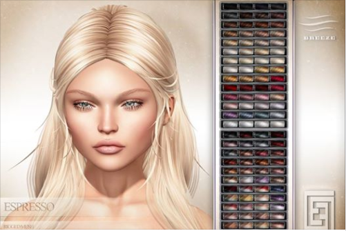 Enough of the surroundings…..check out the jumpsuit from Just Because! Just released a day ago in the mainstore, Fleurista is actually the top part of the Fleur gown repurposed into a pantsuit…..and isn’t it gorgeous!? It comes in solid and sheer versions…pic the sheer….soooo sexy. The hairdo is also new from eXxEsS. Espresso is a long, straight, tucked behind the ears middle parted ‘do…rather perfect for headpieces ❤
