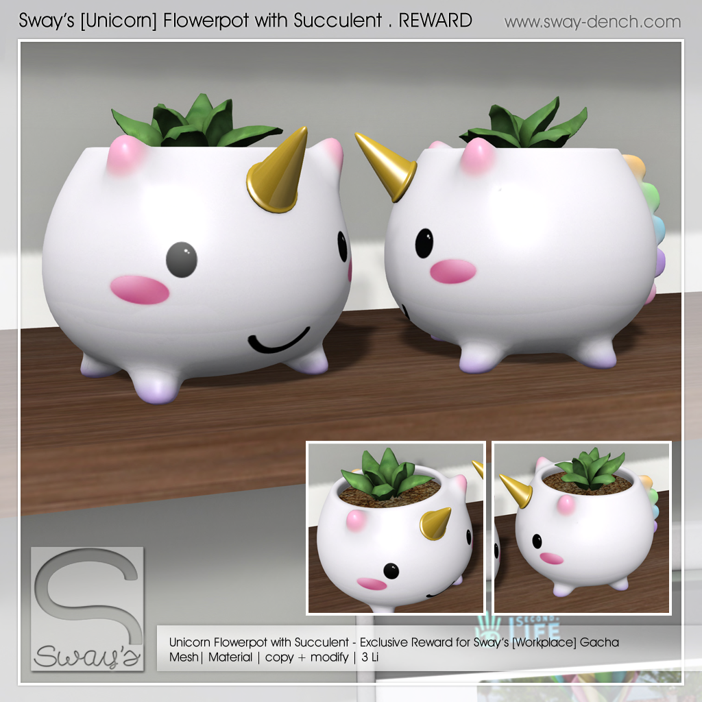 Sway’s [Unicorn] Flowerpot with Succulent – REWARD (1024) Share this: Click to share on Facebook (Opens in new window) Facebook Click to email a link to a friend (Opens in new window) Email Click to share on Pinterest (Opens in new window) Pinterest Like Loading...