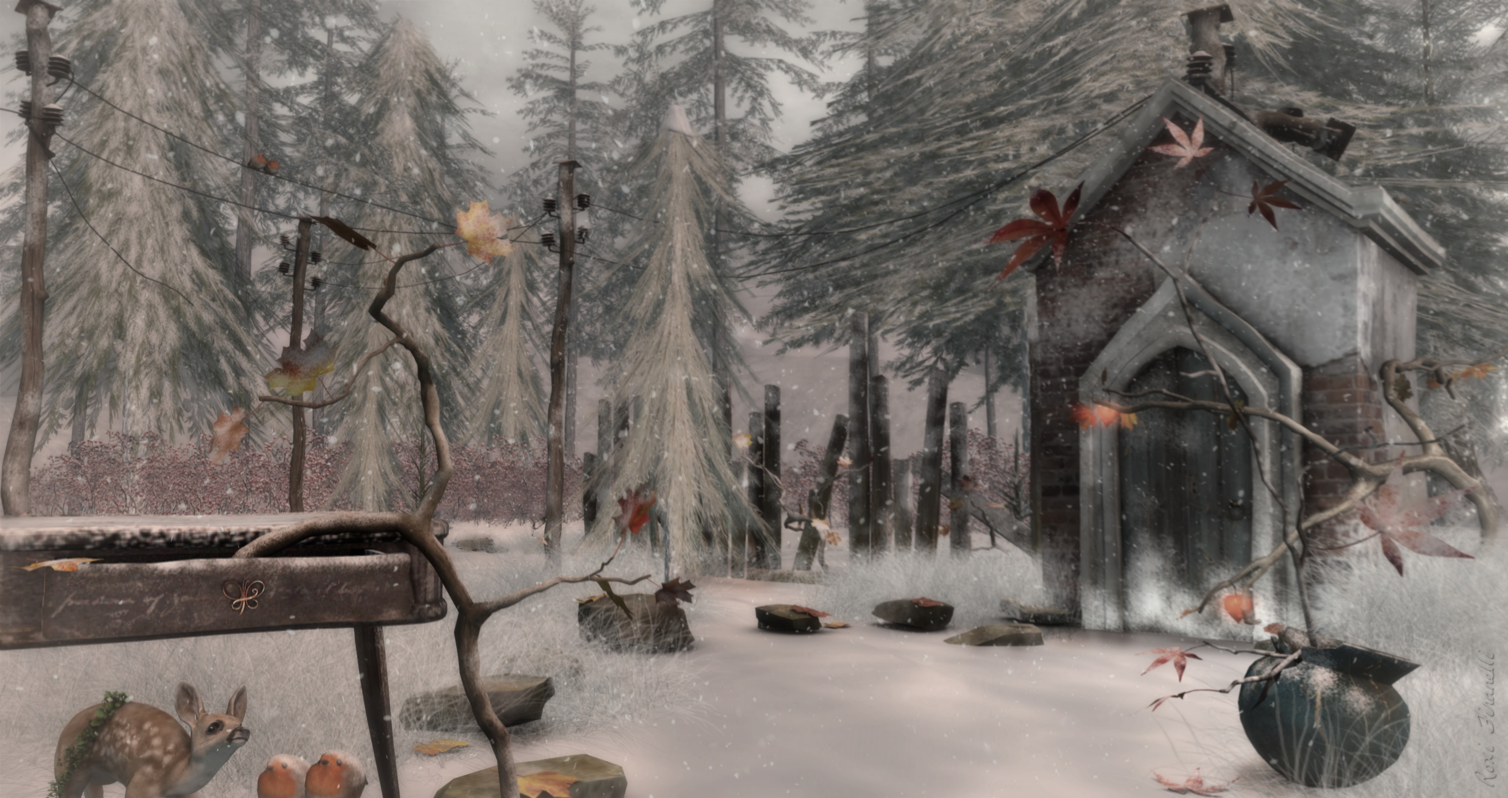 3D – winter dog rose (more snowy)