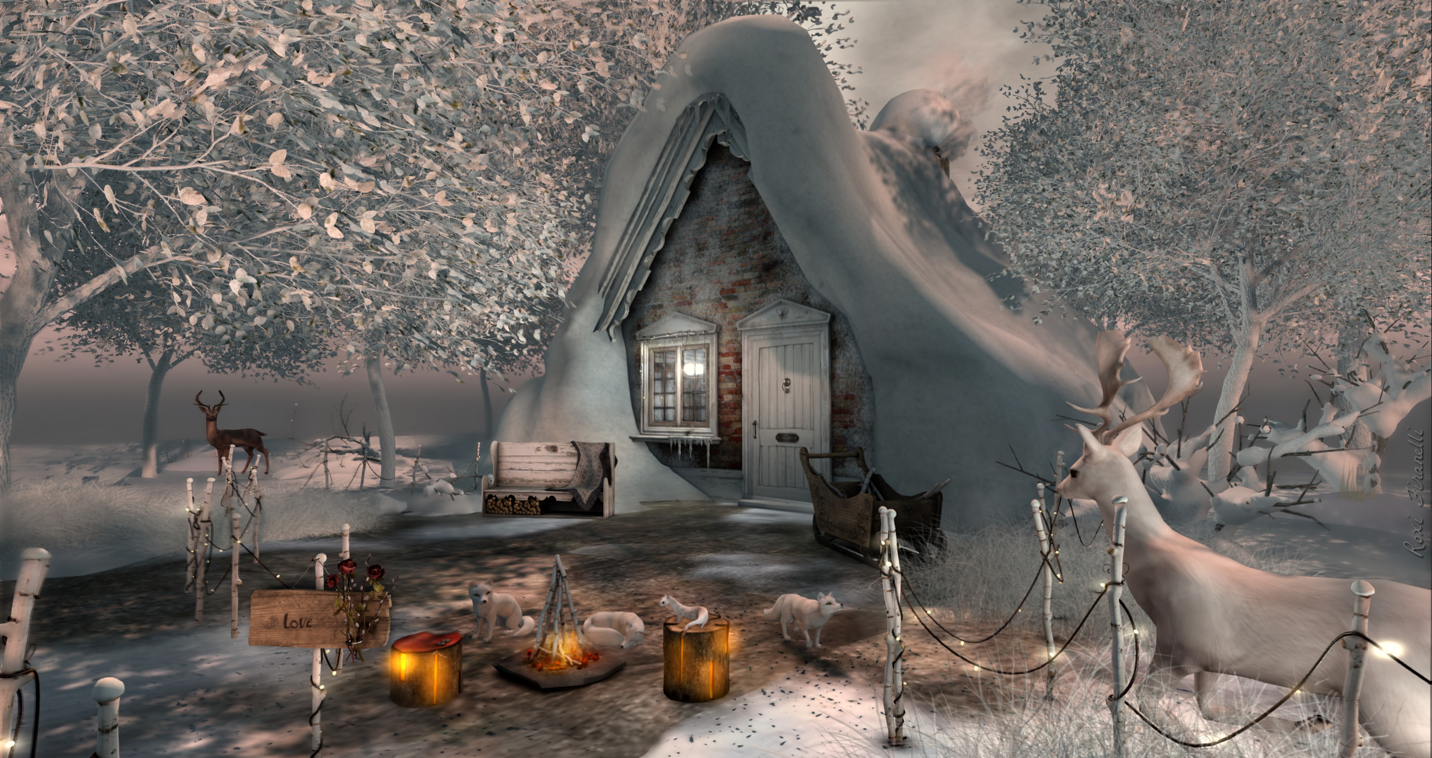 ♡01 – 8f8 – Snuggled In – Snowed In Cottage RARE (50L per play)