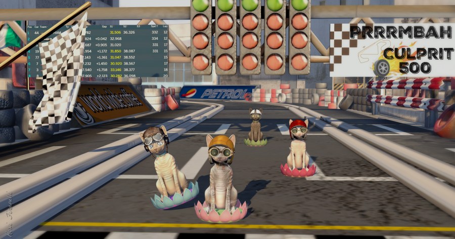 How super cute are these Prrrmbah kitties from Culprit!? I’ve been a fan of the collection from the beginning. When I put them down on my platform and turned them on they started racing all over the place…bumping into walls, me and each other. Darth came up with the race idea, then spent several hours playing the Blackjack gacha to get the racing set and putting everything together while I was working on pinning some pics to Pinterest for Fantasy Faire…. so major props to him ❤