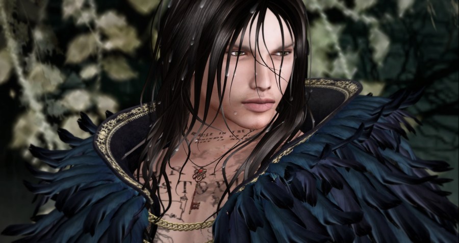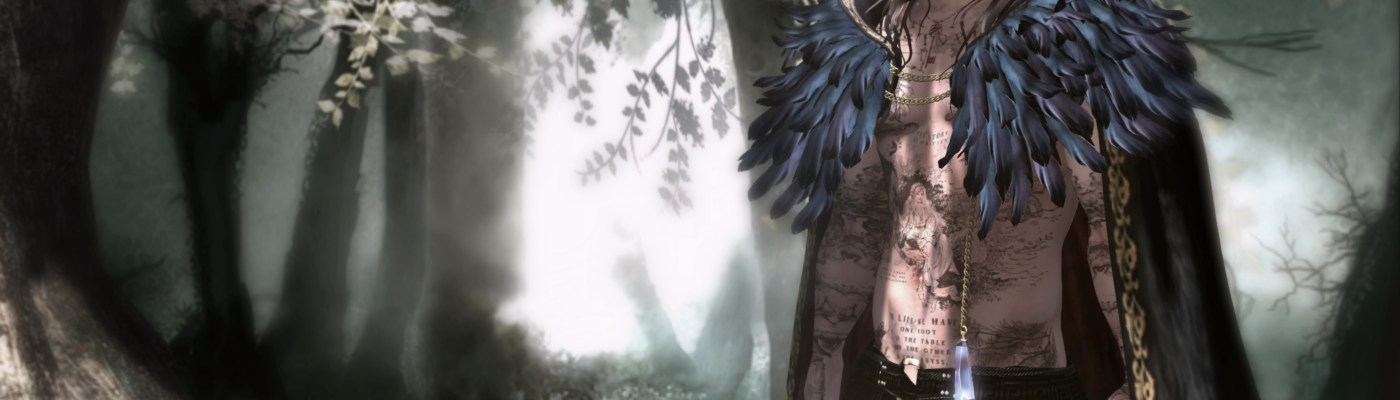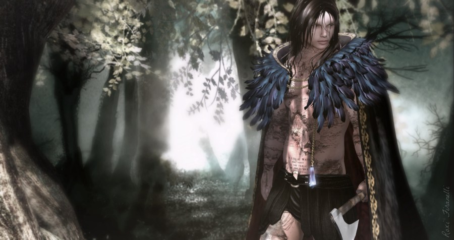 So, stepping out of my comfort zone and shaking it up a bit. I know a lot of bloggers have malts…I actually have 2 now I guess. I mostly suck at styling a guy, when I would in the past, I’d get Darth to do it for me…but I don’t have that luxury anymore…a story for another day. ExMachina has this full body (w/head) out at Enchantment’s Brothers Grimm event right now. I figured…what the hell…if I fuck it up that badly the picture will never get taken and nobody will be the wiser…except for Jarath, who popped in while I was applying the tatt and was more than a bit confused. I am not an astute male shopper (cause duh) and am only familiar with brands/styles that Darth would wear and talk about, so I didn’t know that ExMachina had a body, but apparently I’m in the minority. I easily found the omega applier hud for it on the MP so the Queen of Ink tatt went on like a charm. The kilt from Arcadia and mantle from wzero (both at we Love Role-Play) fit perfectly. The HUD was easy to figure out and there are tons of options…easy squeezy man peasy. There are a couple different skin appliers for Davide (from ExMachina) at the event, but I honestly liked this default best. You can pick up a free hairbase at the booth also. He’s not hard to look at … maybe a little too pretty for me, I may have to rough him up a bit and age him some ❤