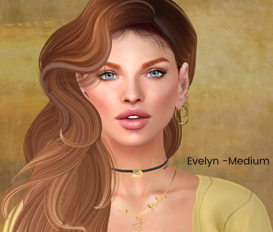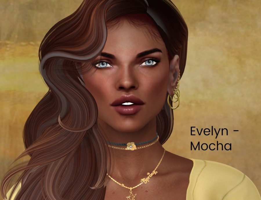 These next shots are Belleza driven. I put on the Evelyn shape and brows that came with the skin as well as using a different hairbase (Izzie’s). Evelyn comes in all 7 skin tones and includes matching skin base, shape, brow shape, matching Omega body applier and 5 brow options. I put the tones on the pics so it’s easier to see ❤