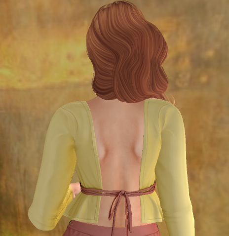 I wore Iconic’s Letoya hair from The Liaison Collaborative and used the brown HUD (YES, those reds came from the brown HUD!!) and Nanika’s Spring necklace (also from TLC). The smexy top is Just Because and is available at Uber right now. The back is as cute as the front too! Look: