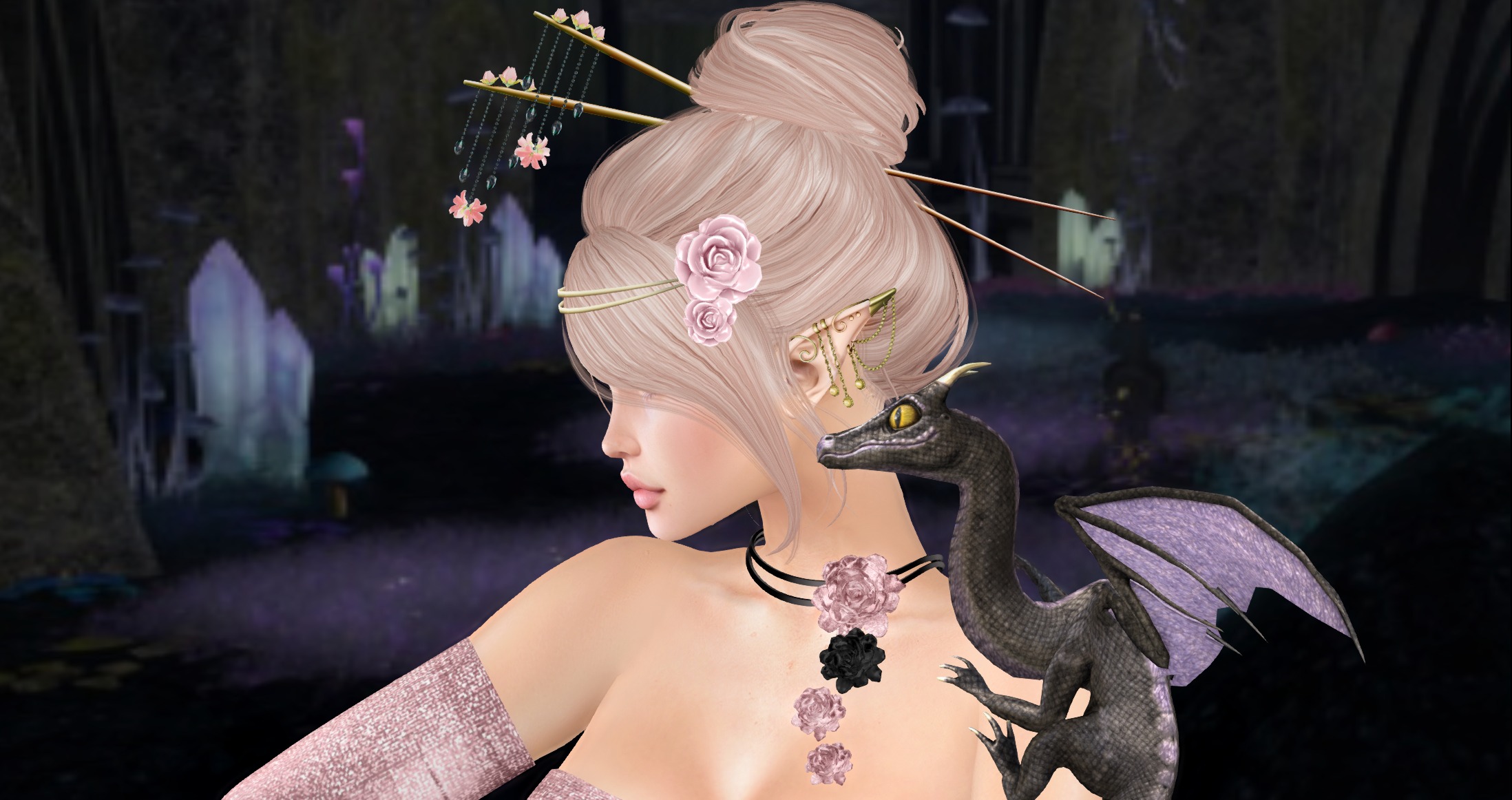 The updo is the newest from Argrace and comes with several different bangs versions, you know….right, left, none….so whatever makes you happy! I have a couple closeups right below and then snaps of Twilight Spring after my list of details ❤