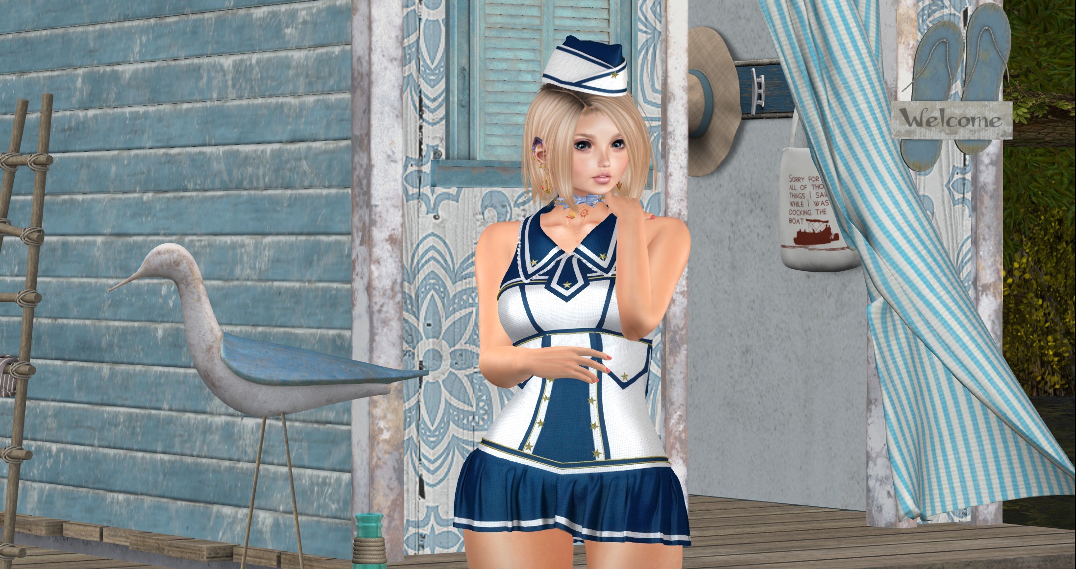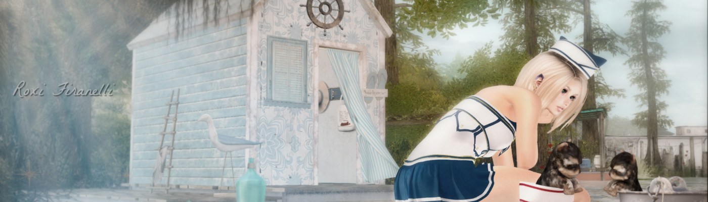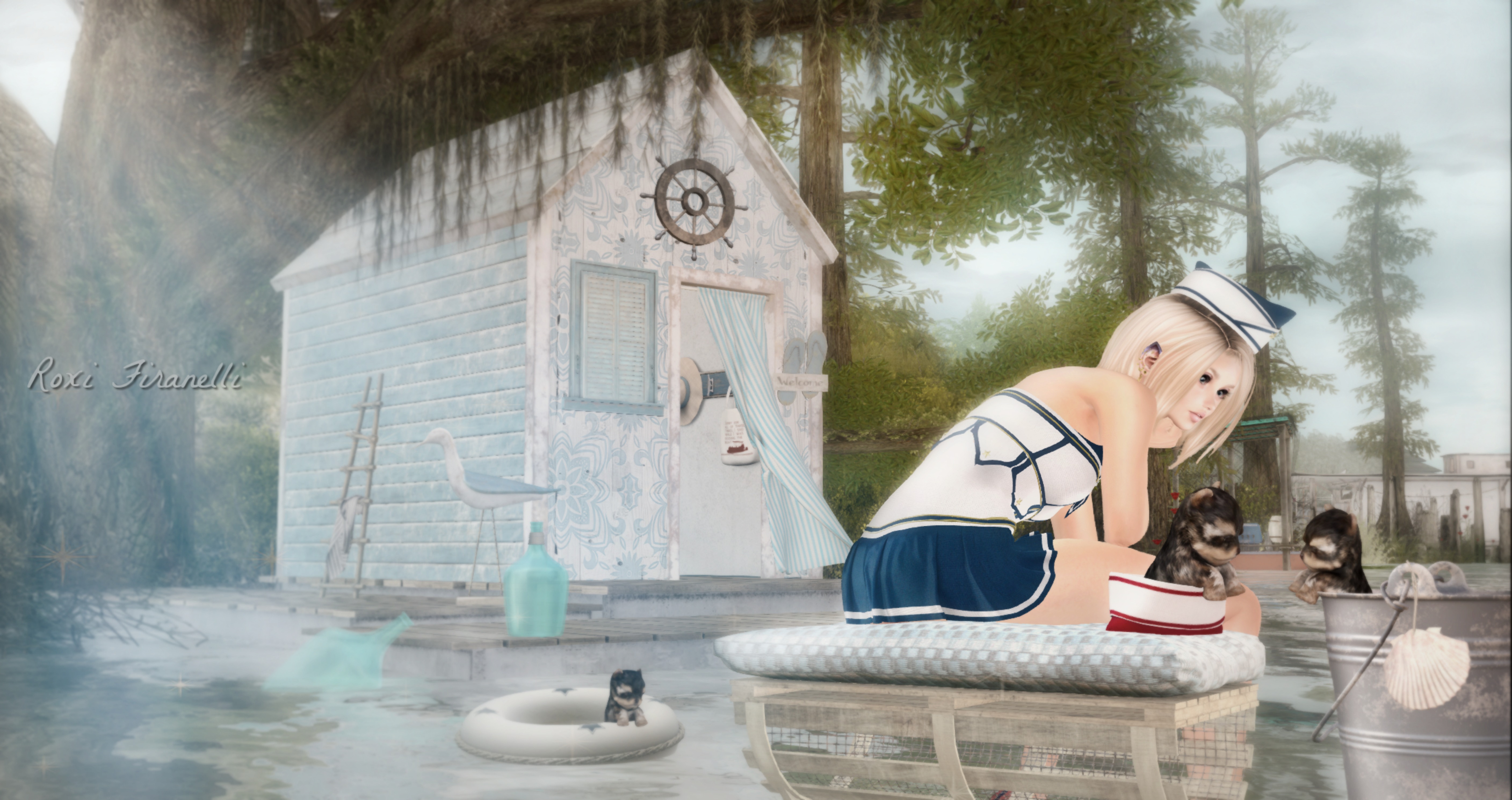 Among the many nautical/summery/beachy things you’ll find this adorable dress by Les Sucreries de Fairy …the hat really makes the look. The hair is KoKoLoReS and yes, that visible part is intentional. I spent 20 minutes wondering why my hairbase was glitching only to look at the advert for the hair and see the part clearly there too. The ocean hut set from Serenity Style comes with everything but the puppies and coat hook (adorable, from Salacity, also TLC) inside. ❤