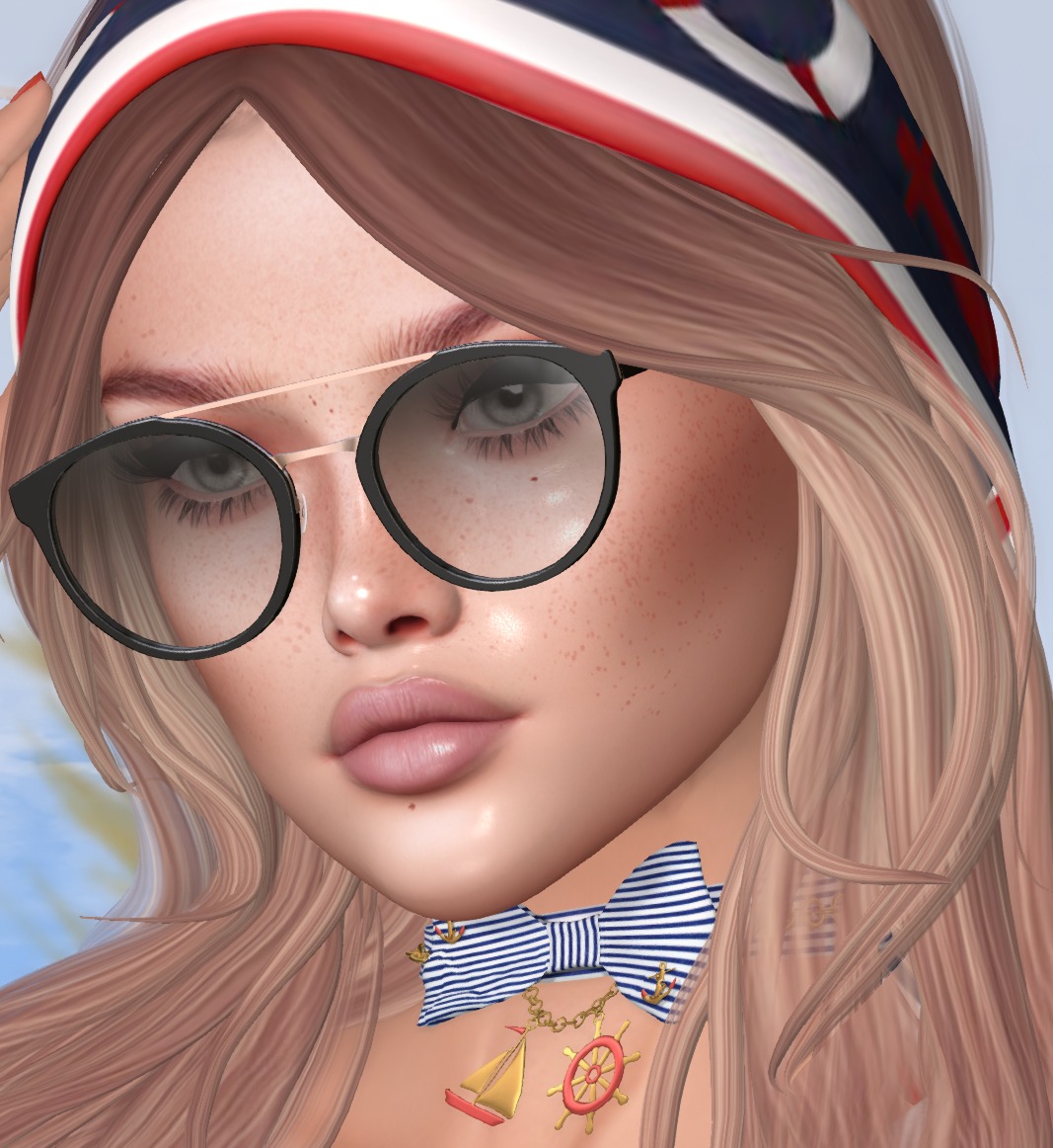 Below is a closeup so you can see the details of the choker from Romizin and the glasses from Deep Static. I swear there is no editing going on and no adjustments…the glasses fit that well with Iconic’s hair ❤