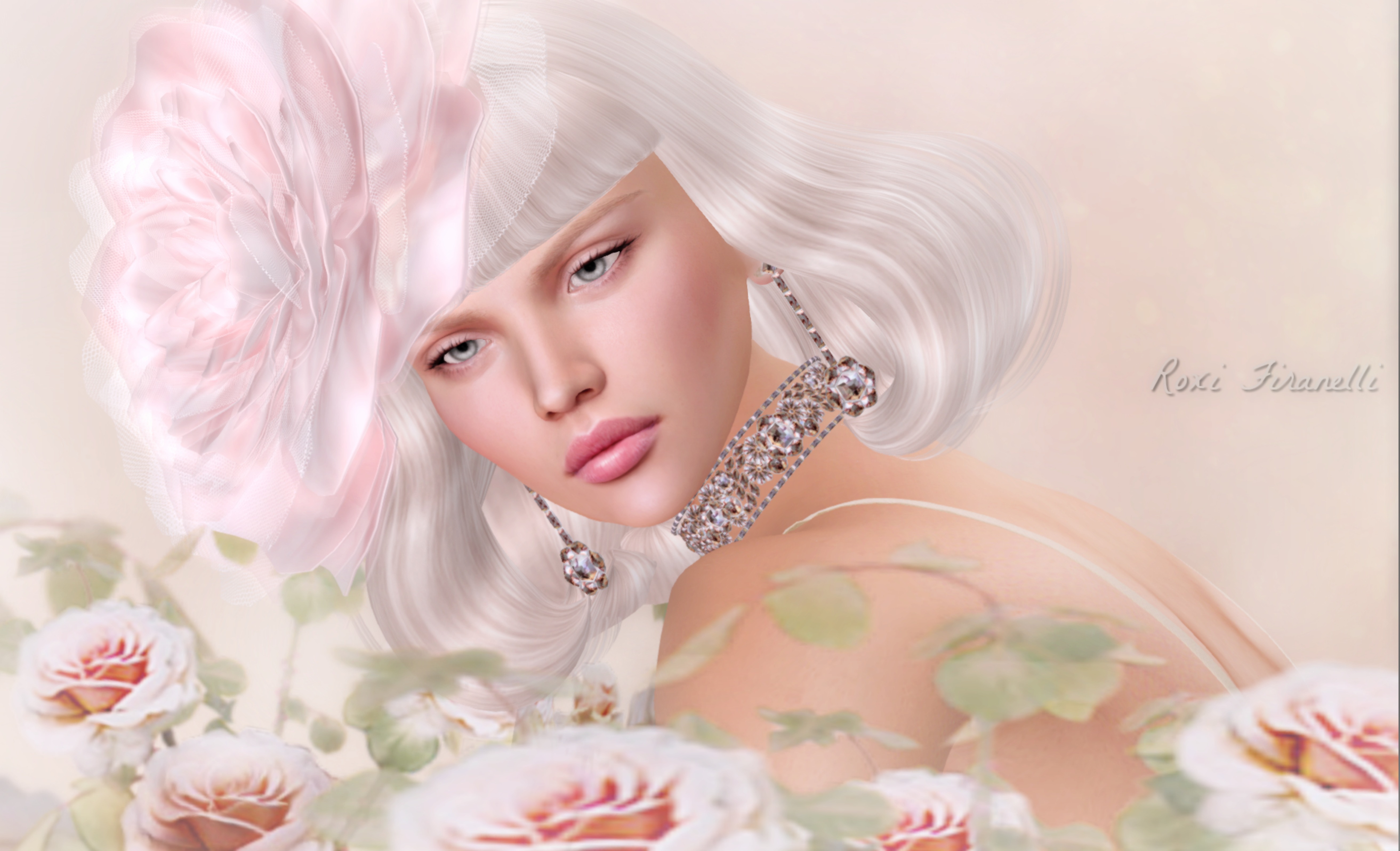 With the exception of softening the edges and cropping, I didn’t edit this picture.  I took it on high (not even ultra) using the Annan Adored Optimal Skin windlight and played with a facelight and the environment editor till I got the lighting I liked (that my friends, takes longer than editing).  I say this so you know that this IS what the skin and hair look like…those textures are perfection.  The close up below is without the facelight and on the setting in between medium and high (cause you know it gets brighter the lower you go)…so this is what you’d look like walking around SL ❤