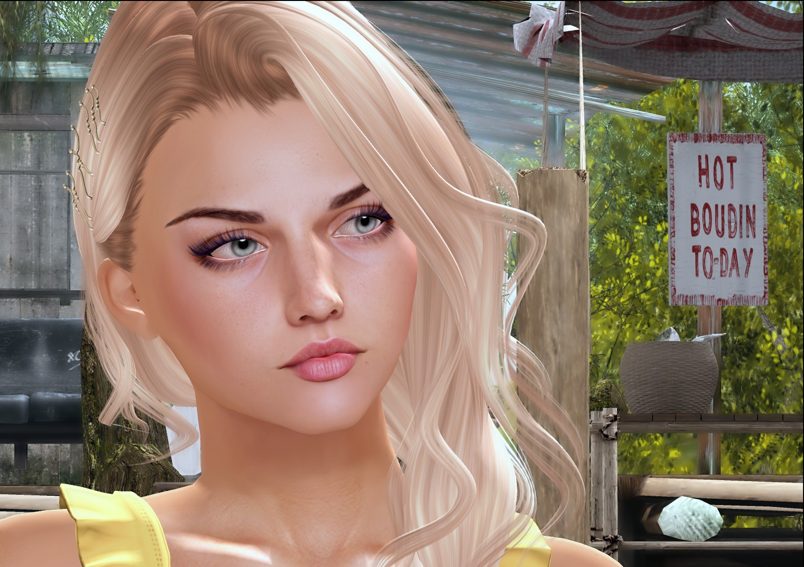 I included the closeup below to show how pretty this new shape from west end Shapes is! Ary is made for a Genus head (I’m wearing Strong Face) and is available the next few days at Cosmopolitan. The skin applier is Belleza’s Poppy for Genus…I really like the under eye creases. I truly just cropped this shot and didn’t edit…and I took the close up on high…not ultra. I’m not wearing a hairbase cause the newer Magika hairs don’t need them. ❤