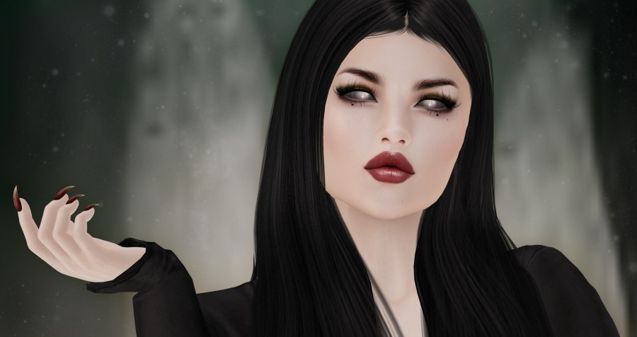 Big thanks to Annie Melson of Just Because for not only bringing in Morticia’s iconic gown for the season but also for being a dream and listing everything in her ads…including poses. I would have never found this pose by FoxCity on my own…and most certainly not in a timely manner to use for this picture, which it’s perfect for!! 💀