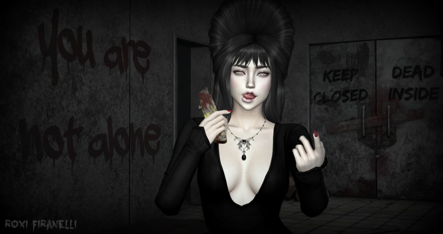 Everybody’s coming out with Halloween skins and this makes me so very happy. LAQ’s new skin, Elvira, is out at Anthem along with some new lashes, eye applier, and some eye FX in the form of dark shadows. The sharp monster teeth will be out soon! 💀