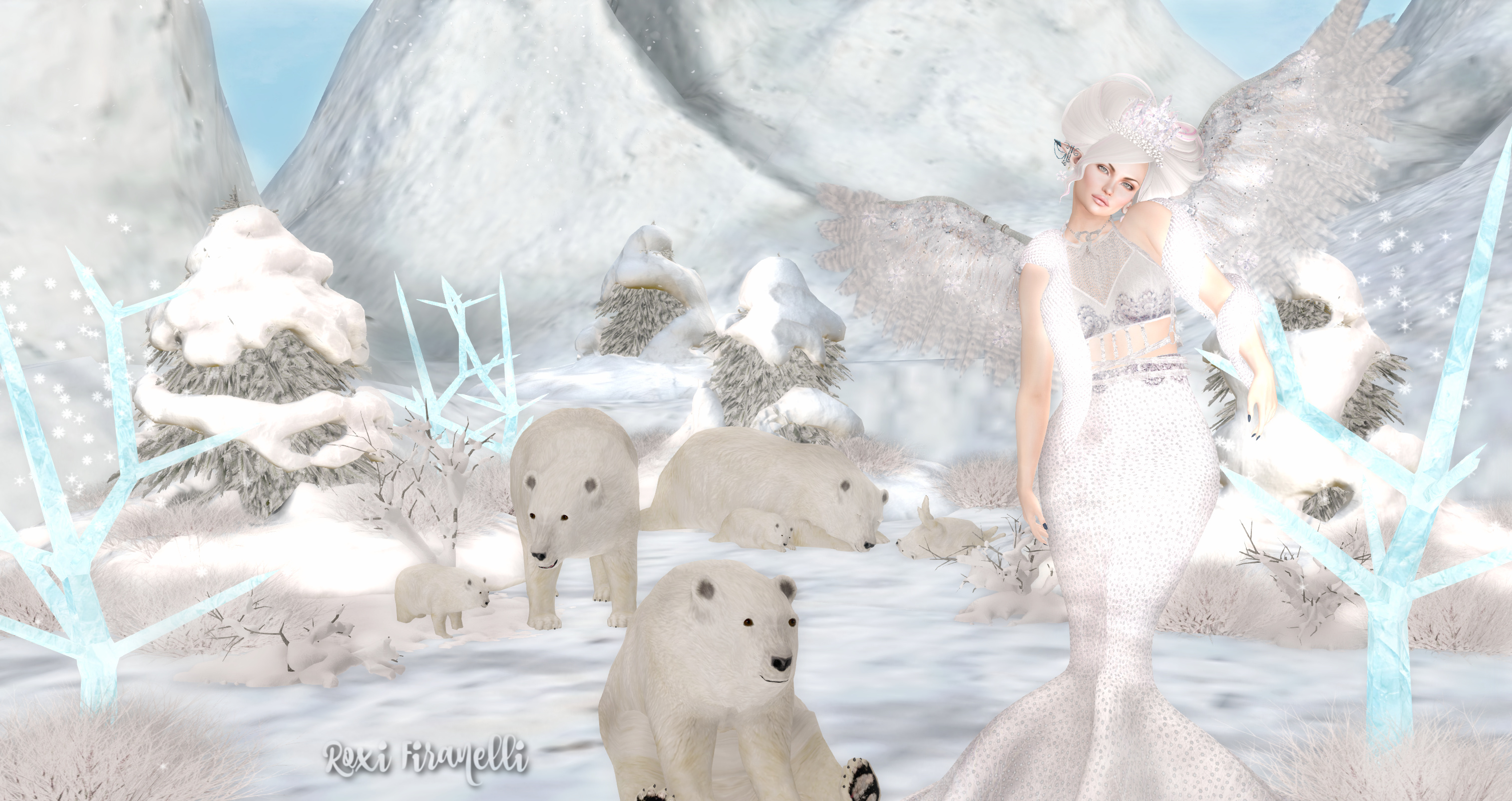 Enchantment is bringing The Snow Queen to SL tomorrow and honestly…I’m super excited to start doing some snow pics. Jinx’s polar bears are going to be a must-play gacha and the Snow Angel dress and wings from The Looking Glass is absolutely stunning! The cool ice trees from Spyralle have delicate snowflakes swirling all around them that can be turned on or off. Save time to go wander the frozen set to gawk and shop this weekend ❄️