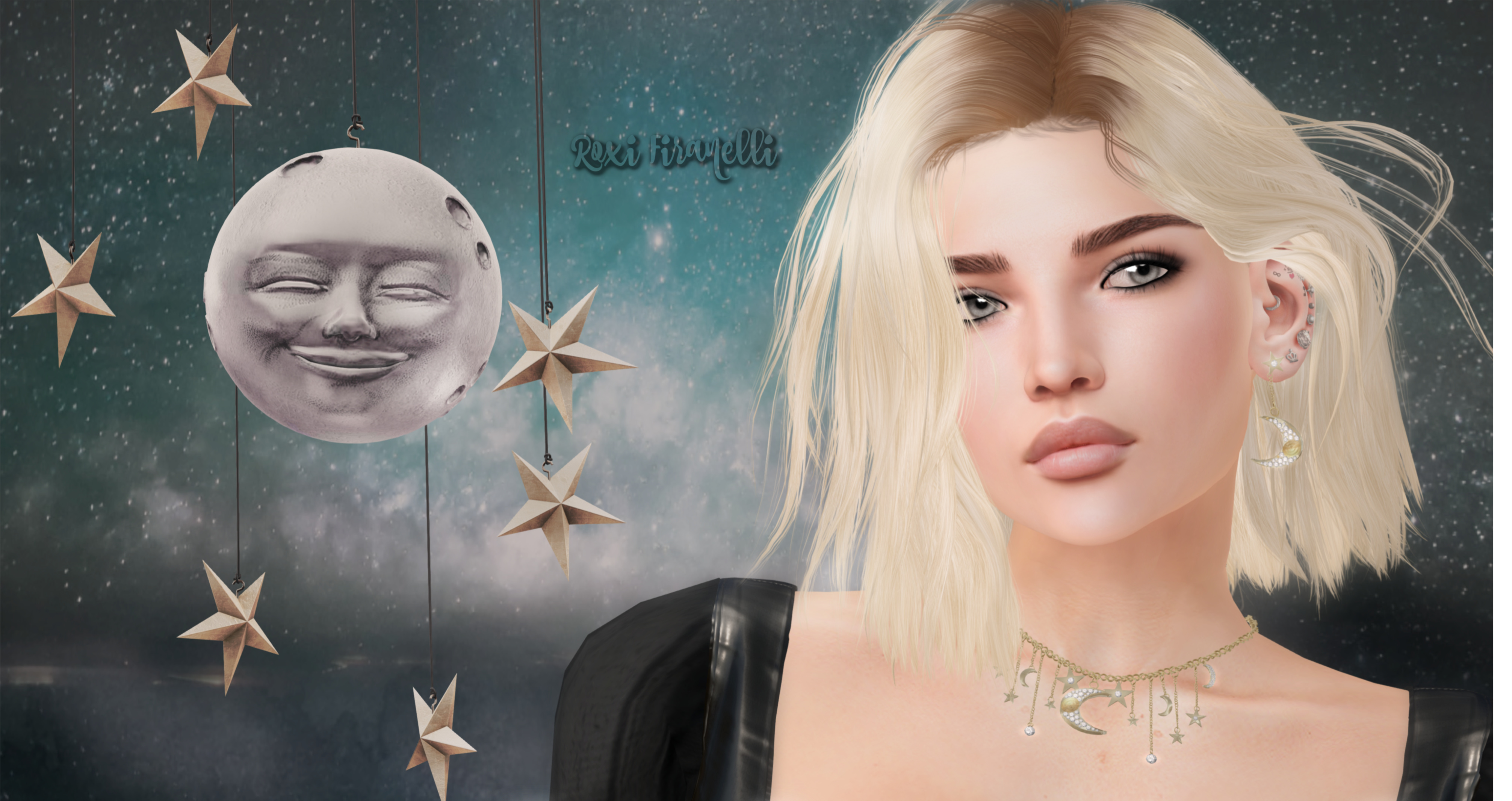 Also, is it a coincidence that the new monso hair is named Roxi?? I think not!! The shoulder-length messy bob is out at FaMESHed right now. Heartsdale’s newest jewelry set, Boho Dreams, is available at Swank all month and the (seemingly matching, but not on purpose!) happy moon and starts from NOMAD can be found at Collabor88, which along with Swank, just opened for the month. ❤