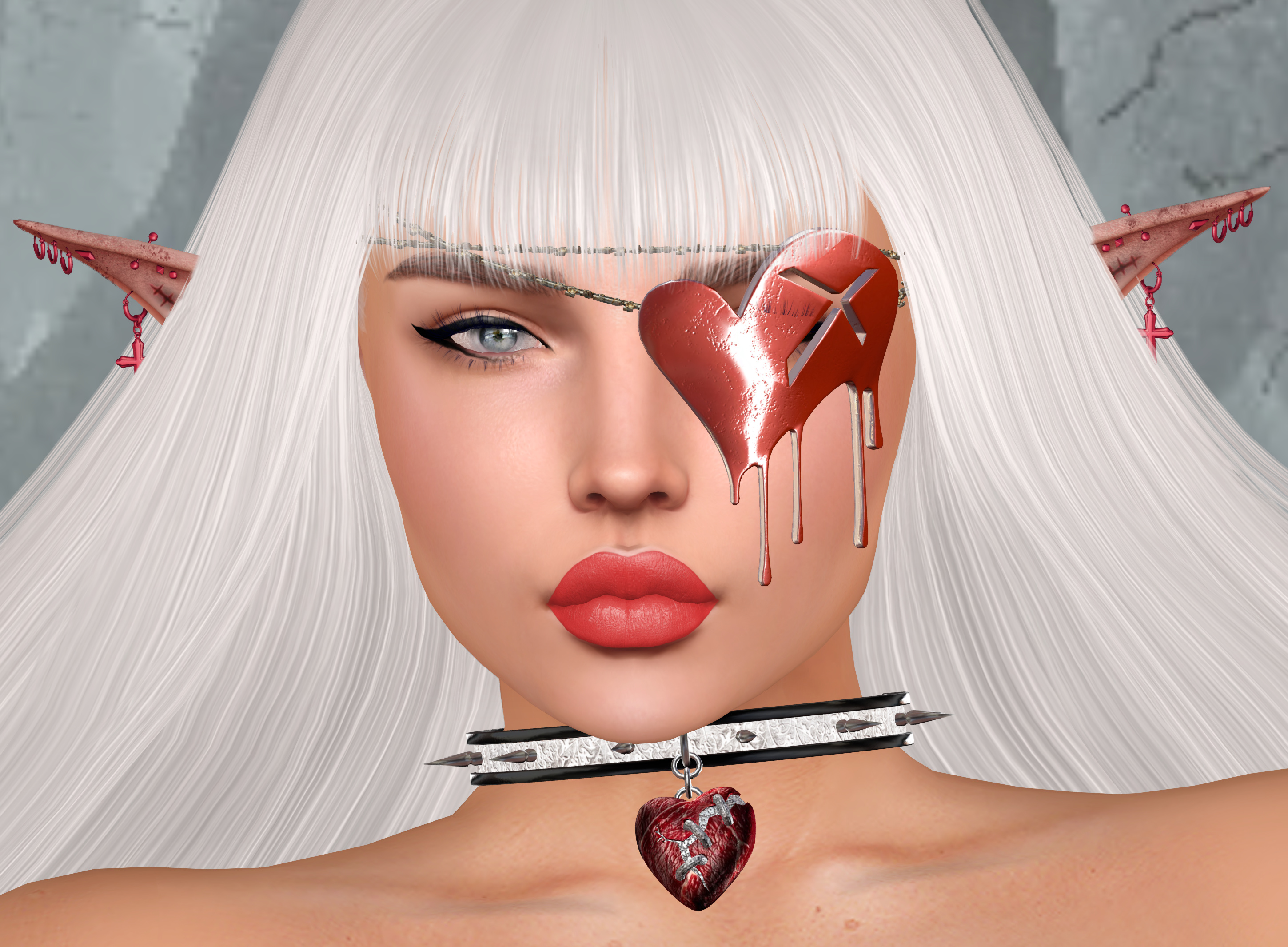 Adding to the intrigue are the accessories from Drunken Brokkr. The heart eyepatch is over at The Liaison Collaborative (in assorted colors for all you anti-red peeps) and the collar is at We Love Role-Play, also with a HUD to switch it up. You get the theme though I’m sure ❤
