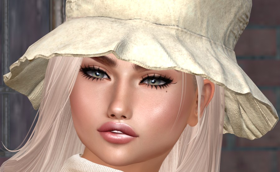 My skin, head, and shape are all LAQ. The head and shape are Scarlet, the skin is Ellie. The main pic up top is using the 1.5 tone and the closeup below is the 2.0 tone. I used the #7 lashes cause I just like the spikiness of them and all the makeup….liner, mole, blush and lips are from the sliders on the HUD. The color of the #13 eyes matched this color from Just Because’s sweater perfectly…so it had to be (it’s also my favorite eye shade, so that helps). The sweater is new in the mainstore at Just Because and comes in so many colors you can match up anything! ❤