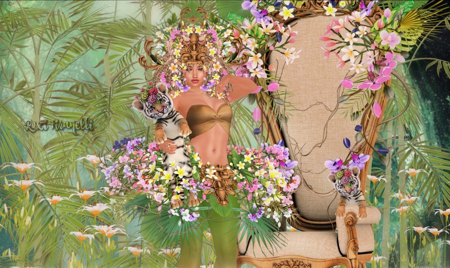 Cuteness abounds as we roll into August! Boudoir’s newest outfit (and chair!) are available at UBER right now. The headpiece is magnificent and really doesn’t need any actual hair with it. That being said, I do have hair on…it just kinda blends in…it’s the new Unorthodox Shai hair…more on that next post! The Bali chair comes with sits and is resizable to fit almost anyone. The freaking cute cubs are Black Bantam, from a previous Bloom event, and are a must-have for being matchy matchy if you’re wearing flowers in your hair ❤
