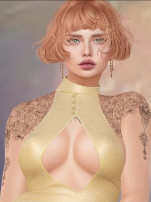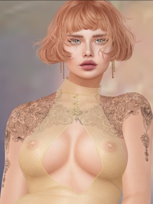 The smexy dress is Aleutia and not only has a jillion hues and patterns to choose from, but also comes with glitteries if you so choose and has 5 different levels of sheerness. My main pic used the #1 sheer…not opaque, but not sheer either. You can go from opaque to barely there if that’s your thing ❤