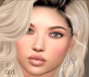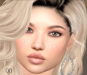 Everything on my face…and in the pics below, are CATWA Sasa goodies. The cutest? Cheek hearts! There are also roses and stars…but the heart freckles are soooo freaking cute (and tintable!)! Check them out in the pale skin tone pic below…to get a closer look, just click on the pic! The tones bring you from adorable to sultry. I used a variety of makeup options from both the HUD and what was in the pack and didn’t do any enhancements through editing or lighting…this is what you get with Sasa ❤