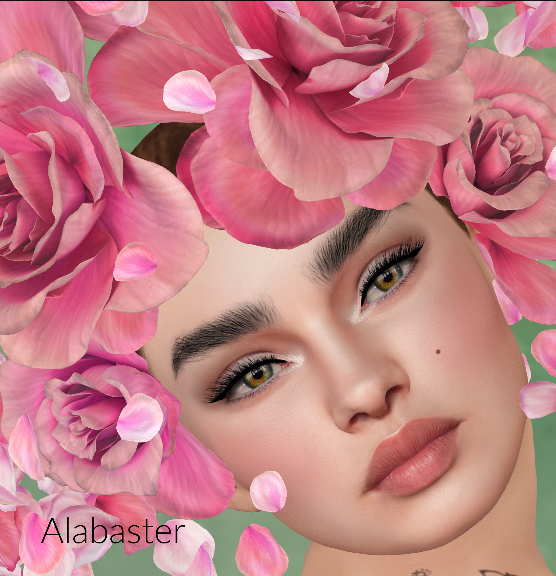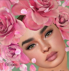 How gorgeous is this face!? You’re looking at the newest LOGO head out at Skin Fair right now. Bella comes with the head, shape, customization HUD that you can load bunches of included makeups and skins into, and an animations HUD. There are 6 included skin tones and all kinds of makeup bits and bobs….check them out below! One criticism though (and I swear Max, it’s only because of my level of laziness)… as much as I love the customization HUD (and I really do), would it be soooo terrible to put the names of the tones on the little pics. My lazy ass self had to play mix and match….put the Bloom body skin on (cause that IS labeled) and then click guesstimate pictures till one matches and go “ahhhh…that’s the Bloom skin tone”, then the next…..you get the picture. Even maybe little abbreviations….give a chick a break. Anyhooo…below are the skin tones and various makeup accoutrements….eye-shadows, lipsticks, freckles, moles, blush (I forgot to change the brows out…I really liked these dark ones). You can click on any of these and blow the picture up to look for imperfections….you won’t find any…you can’t even see the neck line…that’s how almost seemless the shading is between the head and body. There’s no editing, smudging, fancy lighting, neck shaders, softening….nada…the only thing I did was mush in the neck a bit due to the pose (and hell, I forgot to do that on half of them), crop and put the name on them. ❤