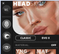 I’d like to point out that I figured this out on my own after trying to deduce why I had this bizarre texture on my face. So you know….put the alpha on, take the alpha off, check for stray layers and/or alphas from other heads, click every damn button you see. My next step was to go into group chat and ask for help….those peeps know everything. Then I noticed the classic/EVO X buttons, looked at the skin in it’s folder and saw that it was a regular EVO, clicked the classic button and walaaaaaa…a face! And a pretty face at that! The scientific method saves the world once again. You’re welcome ❤
