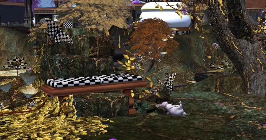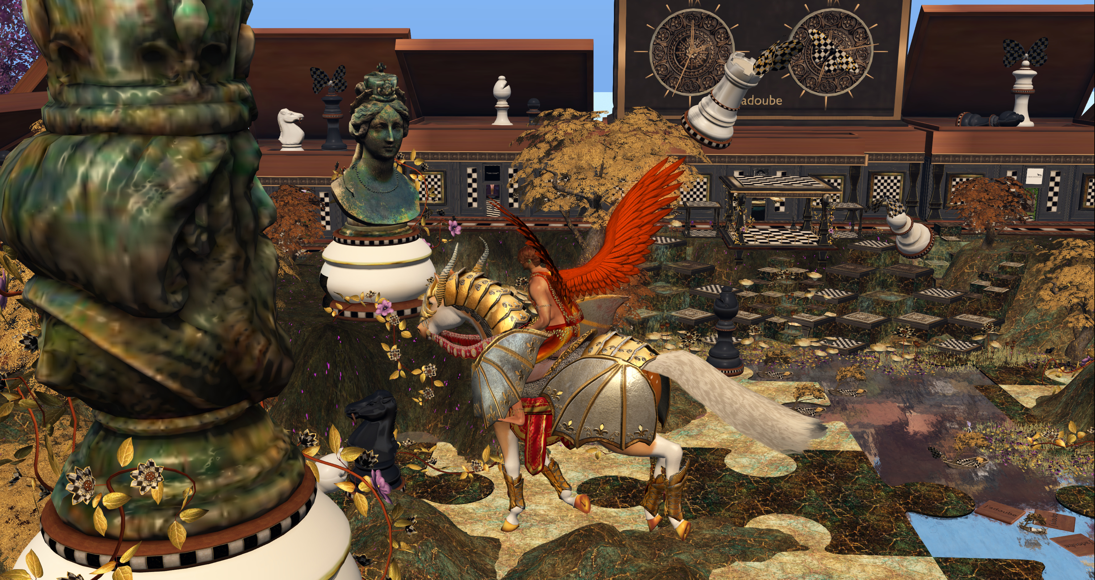 My search for shenanigans at the Fantasy Faire took me to J’adoube today. A fantastical sim built by Sharni Azalee of The Looking Glass. I’m not gonna lie, I had to look up what J’adoube meant (2 years of French in college and all I can do is ask where a bathroom is). It means “I adjust”, it’s used in chess when adjusting a piece without intending to move it. Clearly the butterflys that inhabit J’adoube didn’t get that, as they are boldly absconding with various chess pieces. ❤